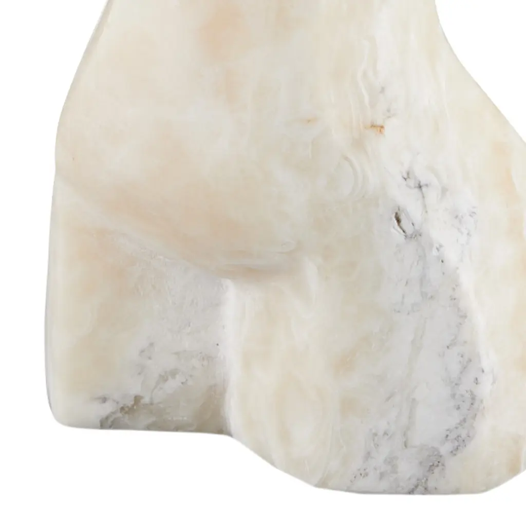 Made of natural stone, the Giada Onyx Bust Sculpture has a contemporary profile with clean lines that are enlivened by the natural veining and drifts of color in the honey onyx. The stone sculpture is carved by hand and honed to have a smooth surface. The shading on this sculpture will vary from piece to piece, given it is made of natural stone.