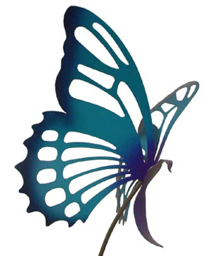 Perched atop a metal stake, a big splash of fantastic color lights up your yard or garden year-round! This large butterfly stake is fabricated from weather-safe heavy-gauge painted steel and is available in your choice of 3 colors: yellow, purple-blue or verdi green. Featuring a 21" wingspan, each butterfly is elevated to a great height with an included 48" steel stake. Handcrafted in North Carolina. The steel butterfly stake is shot-blasted (for a smooth clean surface), flame-treated with zinc, and painted with high quality 2-part epoxy paints, resulting in a weatherproof coating that resists oxidation and is safe for outdoor use in all climates. Natural environmental dirt build-up may be removed with mild soap and warm water.