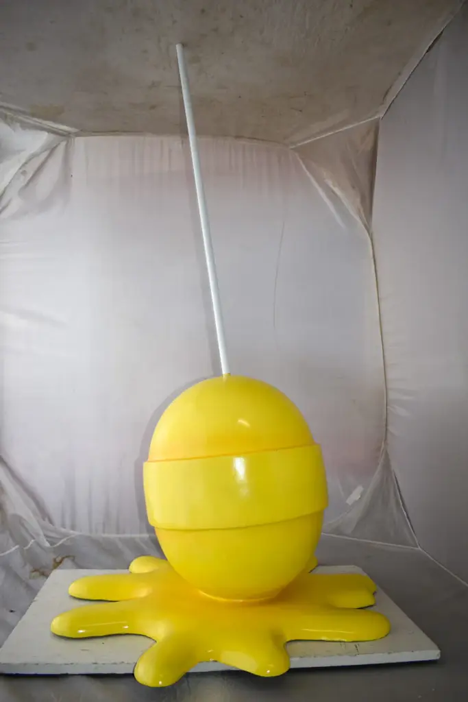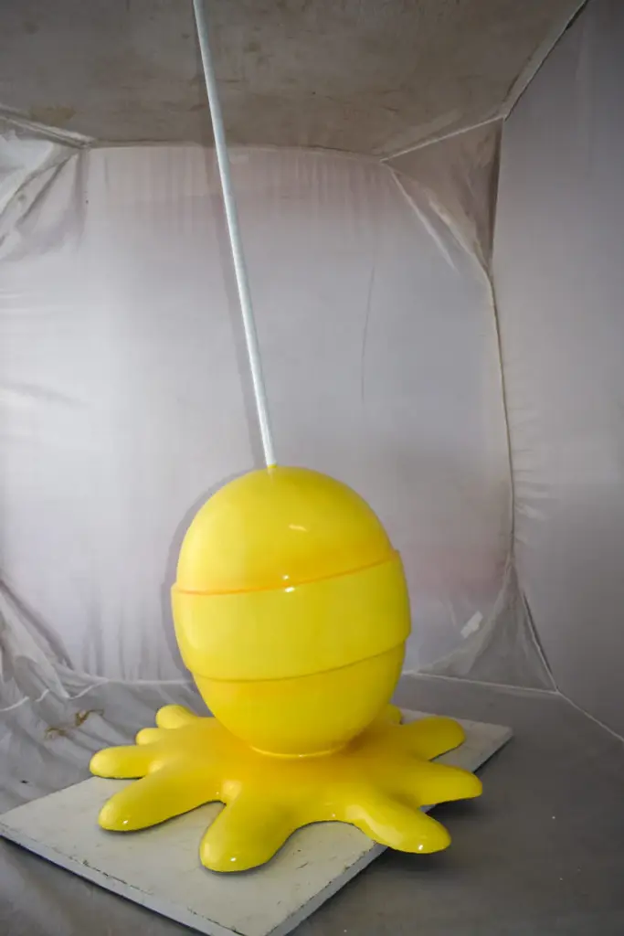 Giant Yellow Lollipop Melted On The Ground Resin Statue Size: 31" X 27" X 56"h