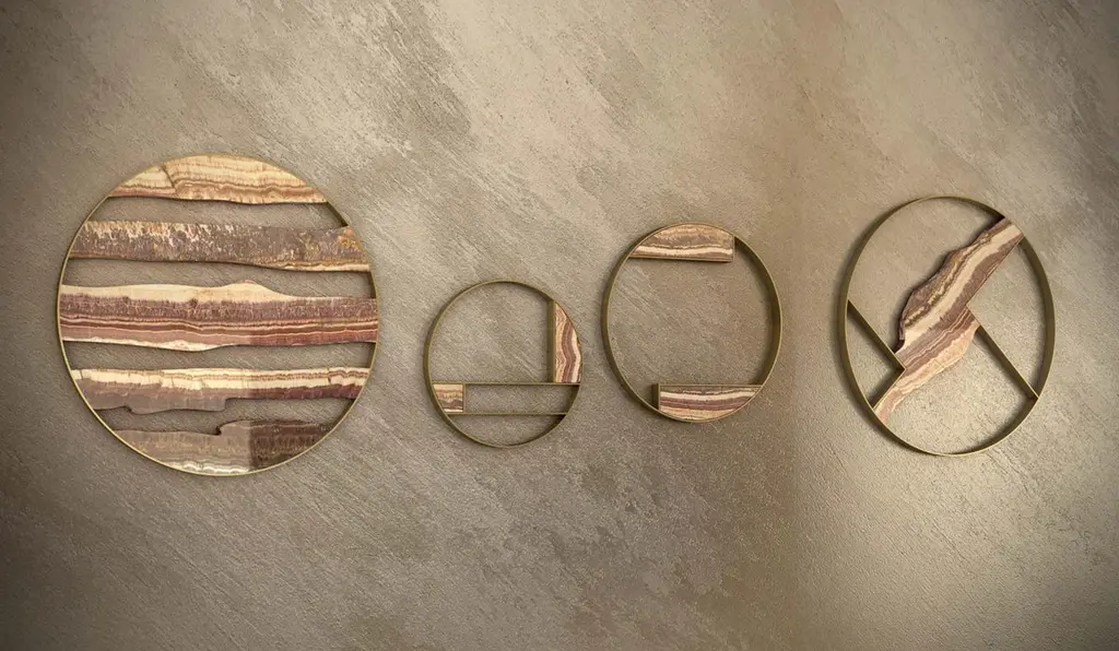 Giovannozzi Home, Wall Sculpture, Marble And Metal Brass Finish, Italy