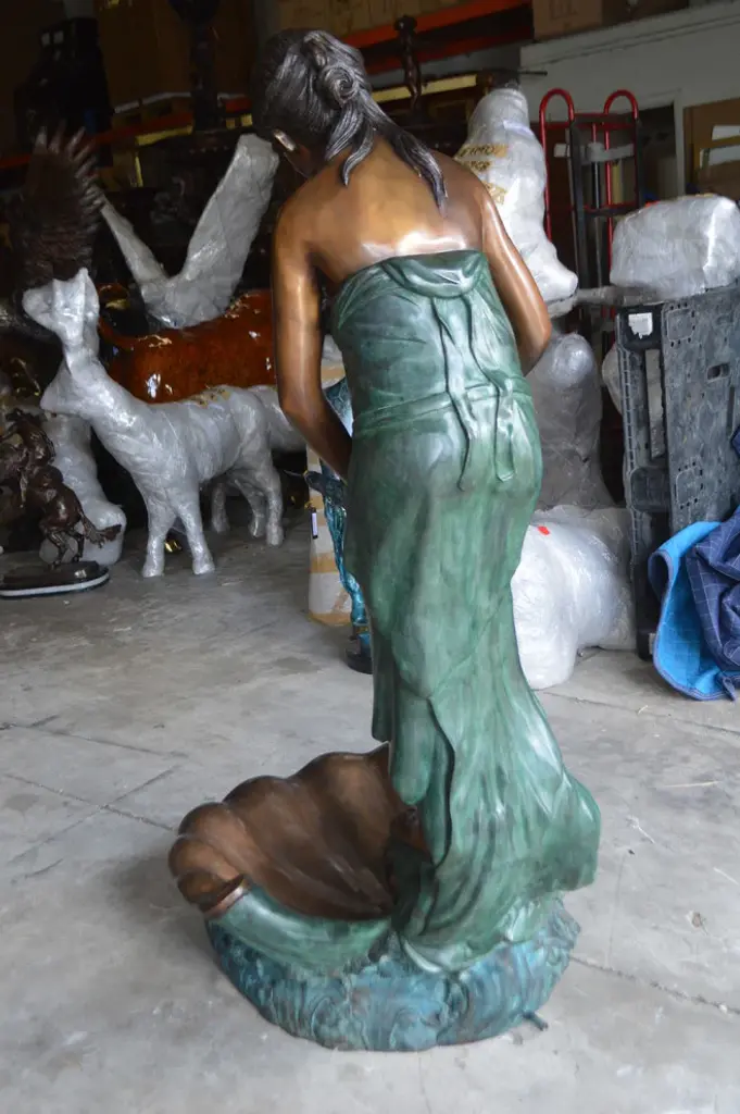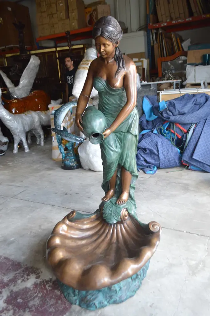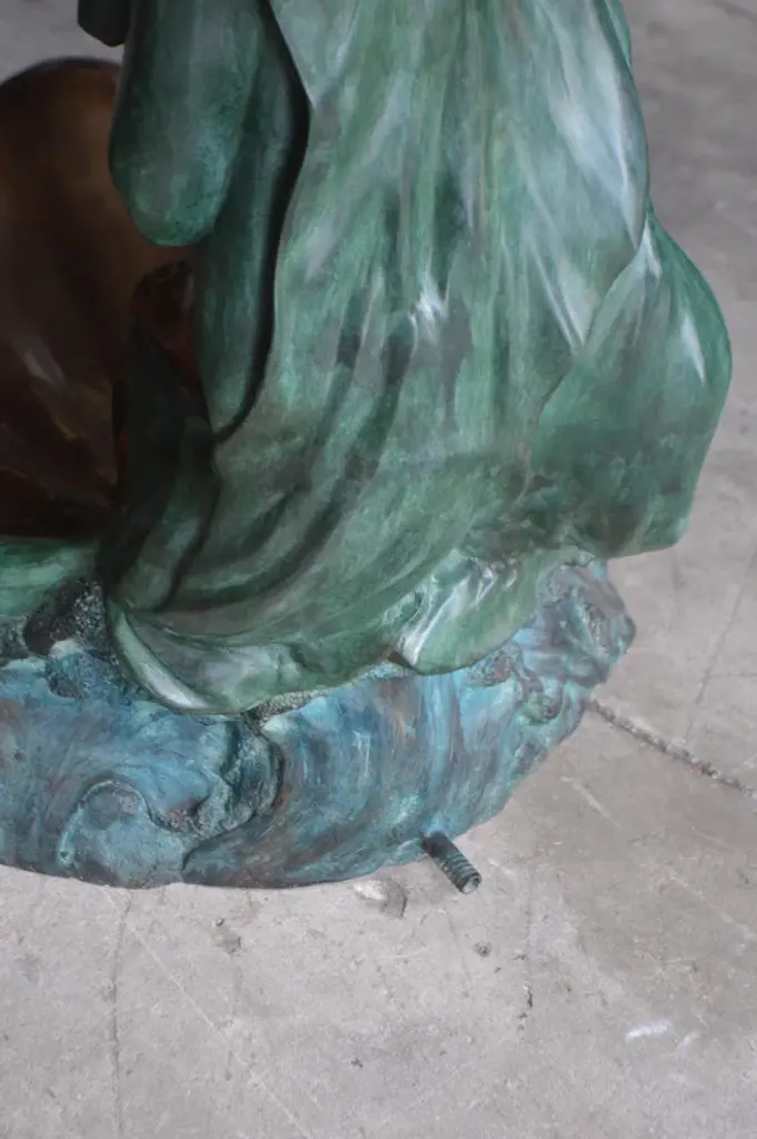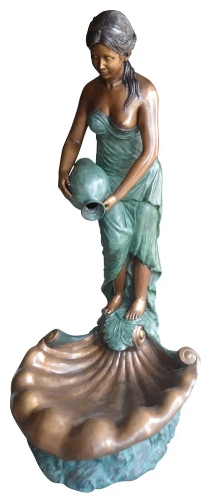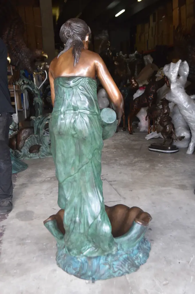 Girl Holding A Pot On Shell Fountain Bronze Statue - Size: 33"l X 30"w X 62"h