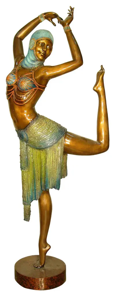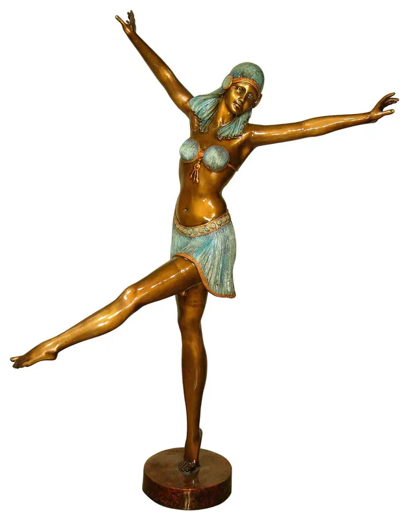The beautiful Musical Girl Playing the Violin Statue is a fantastical depiction of a young girl casually enjoying the sound of music. This is a great piece of bronze work that details how intricate this type of art can be. This reproduction bronze statue is museum quality hand-casted in high-quality bronze using the Lost Wax Process of bronze and patina casting. The patina chosen for this Timeless Creation is a mix of hand finishing with different colors and Polychrome techniques also referred to as enameling over bronze. This impressive Bronze Statue will be a permanent fixture on the grounds of your estate for years to come. Size: 10"L x 7"W x 19"H. Weight is: 12Lb