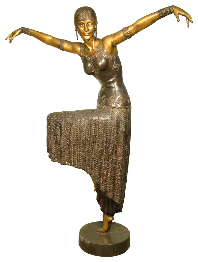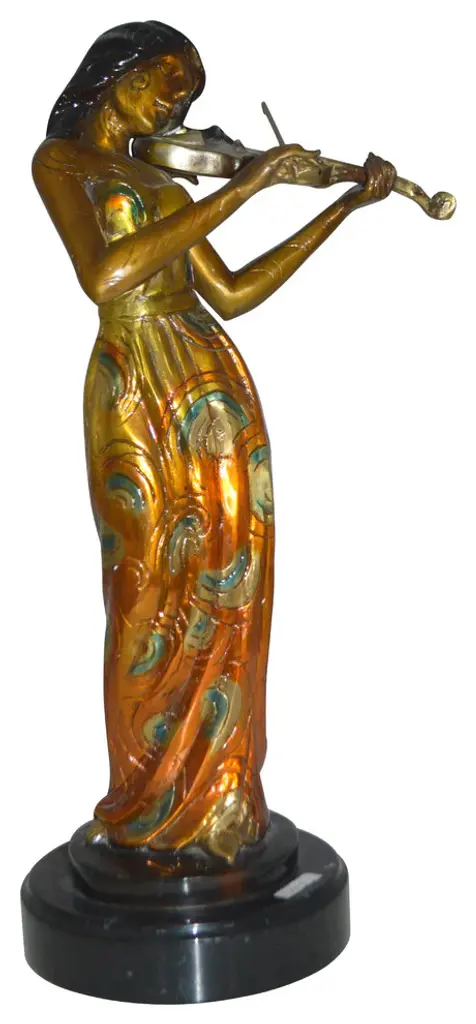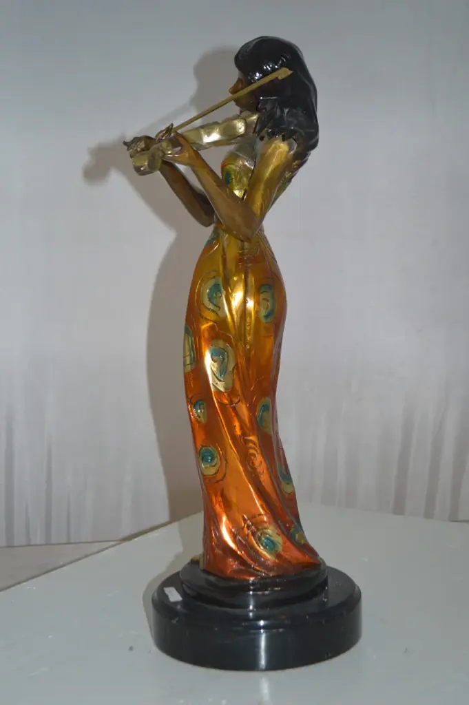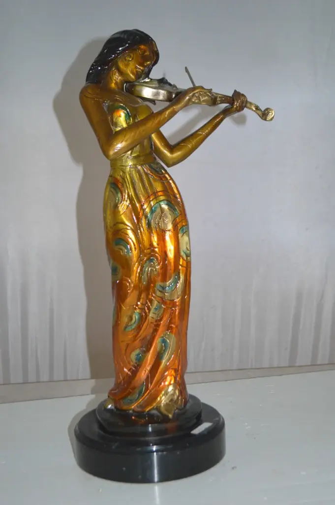 Girl Playing The Violin Bronze Statue - Size: 10"l X 7"w X 19"h.
