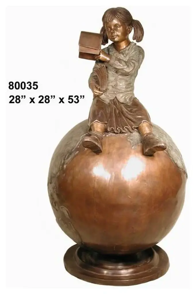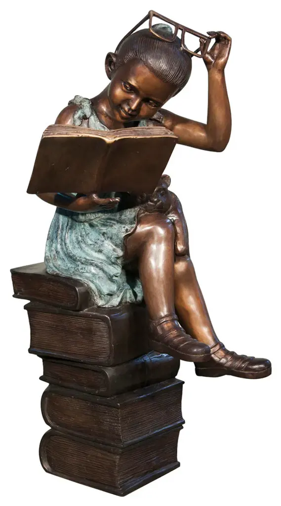 Girl Sitting On A Stack Of Books Reading, 38" Design Sculpture