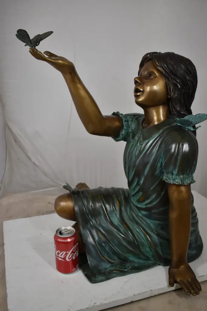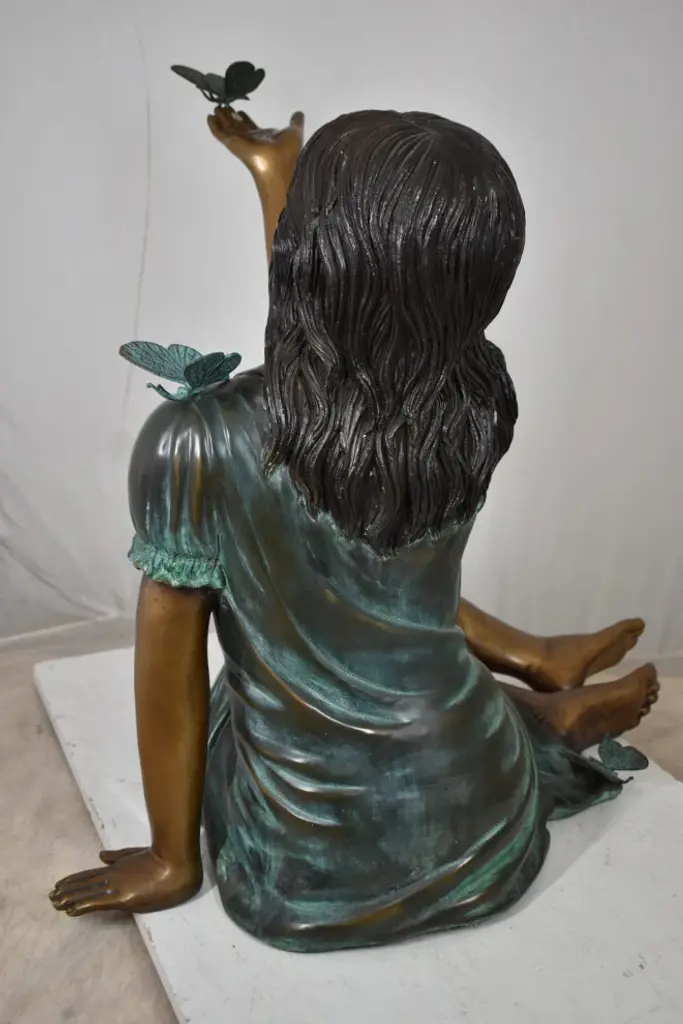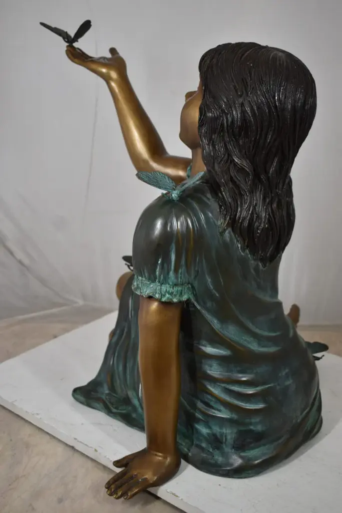 Girl With Butterflies, Green Shirt Bronze Statue Size: 27" X 17" X 24"h