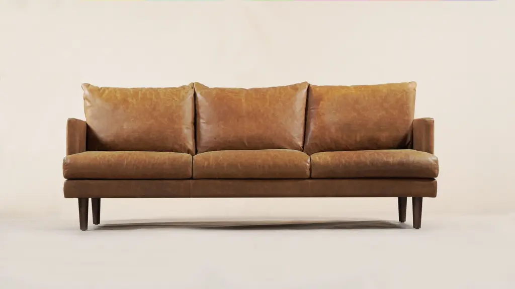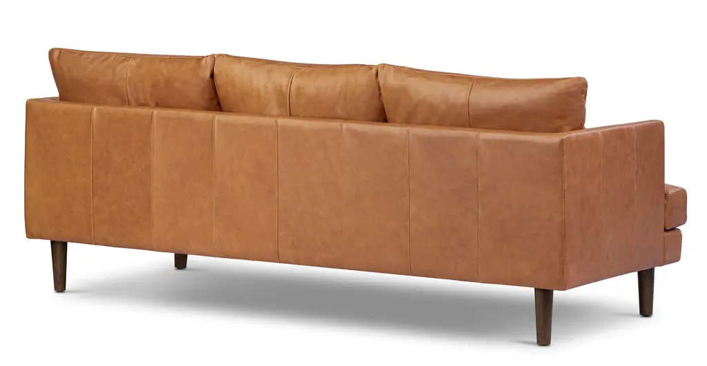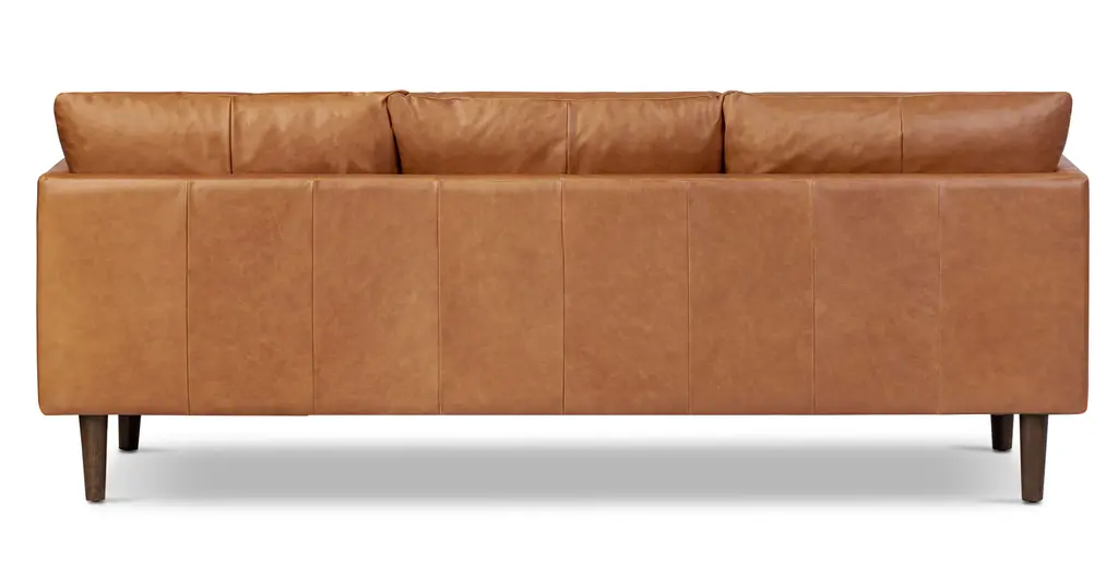 Introducing a signature piece that makes a seriously stylish impact. Our Girona Sofa is crafted with full-grain pure-aniline Italian tanned leather upholstery that’s buttery soft and brimming with authentic character as a result of natural hide markings, and it only gets better with time as scuffs become part of its vintage patina. Its durable corner blocked wood frame with reinforced joinery is all kiln-dried to deter warping. Robust high-resiliency foam cushions are topped in feather down for extra comfortable seating. Strong Pirelli webbing offers the ultimate support and its peg-profile legs in a walnut finish help to ensure this versatile sofa adds luxurious allure to your living room for ages to come.
