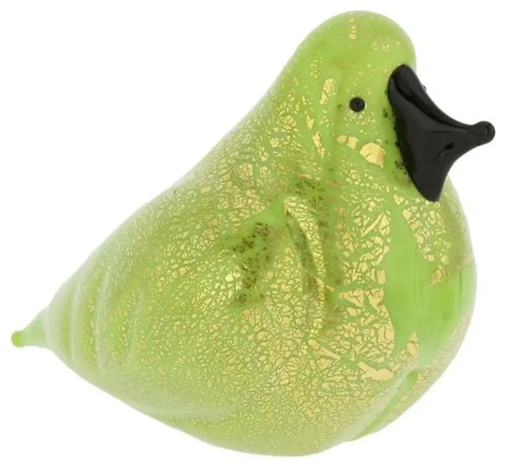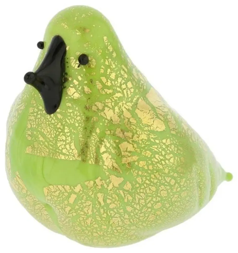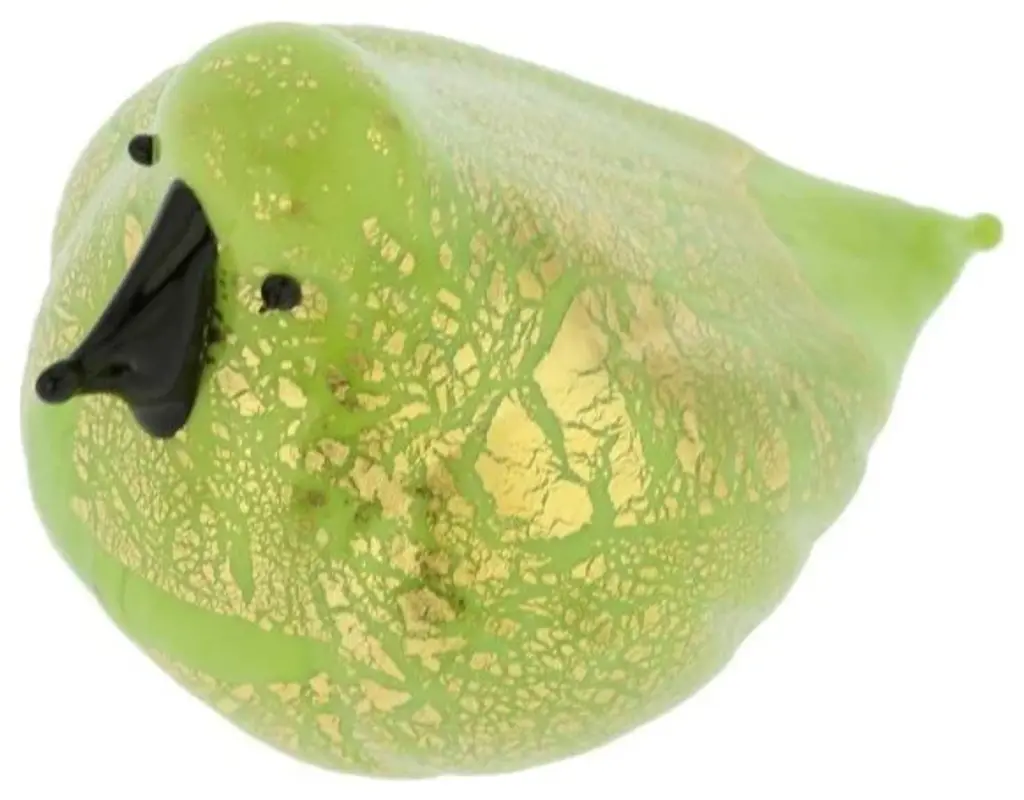 This cute Murano Glass bird features deep color, which sparkles with 24 karat gold leaf, making it a beautiful addition to any home or office. With its green body, cute black eyes and finely sculpted beak, this Venetian bird will instantly captivate your heart. Lovingly handcrafted by the world-famous Murano glass masters, this fine bird is the perfect expression of the artisans'' talent and creativity, and a wonderful gift for the special people in your life.• Measurements: The Murano Glass bird measures about 4 inches in length and 3 inches in height.• The bird features attached Murano Glass authenticity sticker, and comes with the certificate of authenticity.• This sculpture is very well packaged to avoid breakage in transit.• As this Murano Glass figurine is a unique piece of art made by hand, some variations of colors and patterns as well as uneven distribution of gold leaf throughout the surface are possible. These are not defects but the very features by which experts can identify authentic Murano Glass.