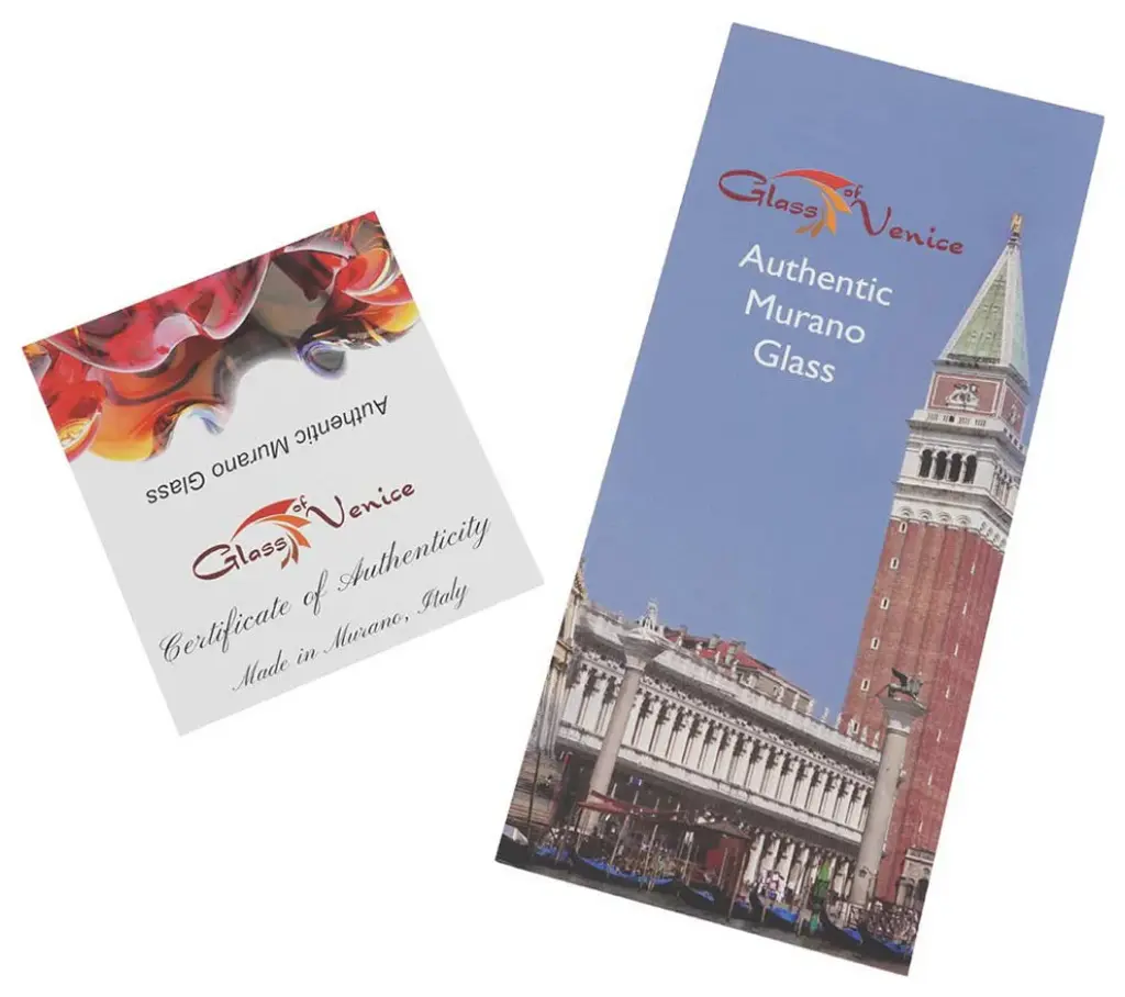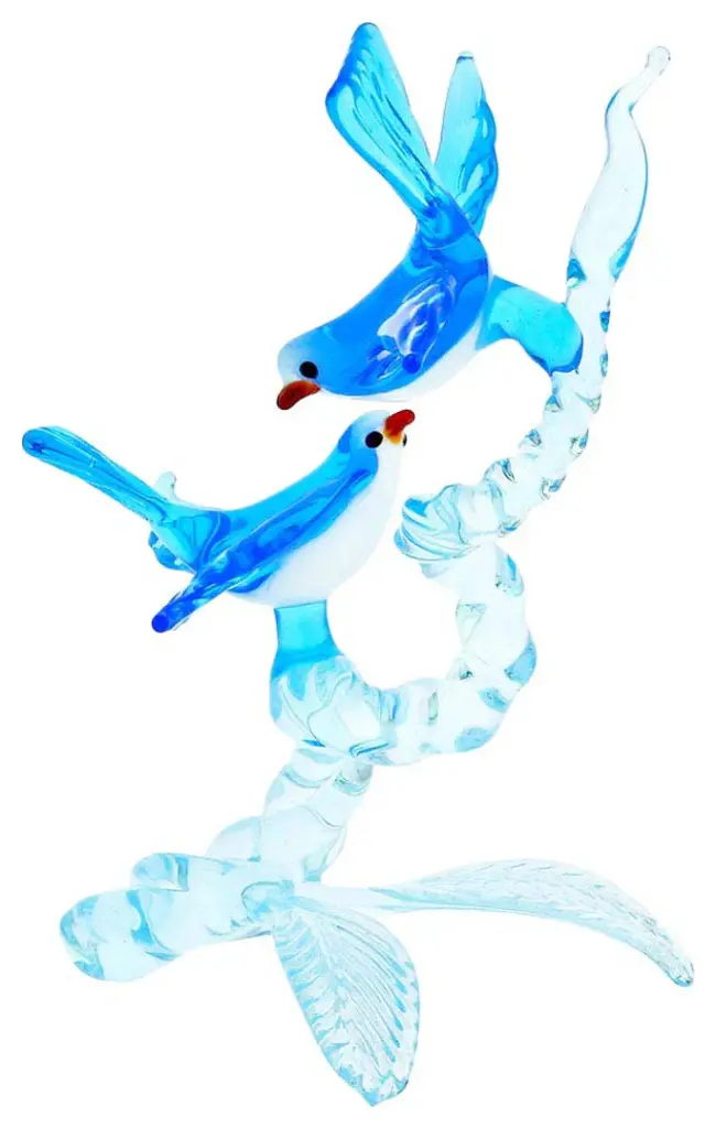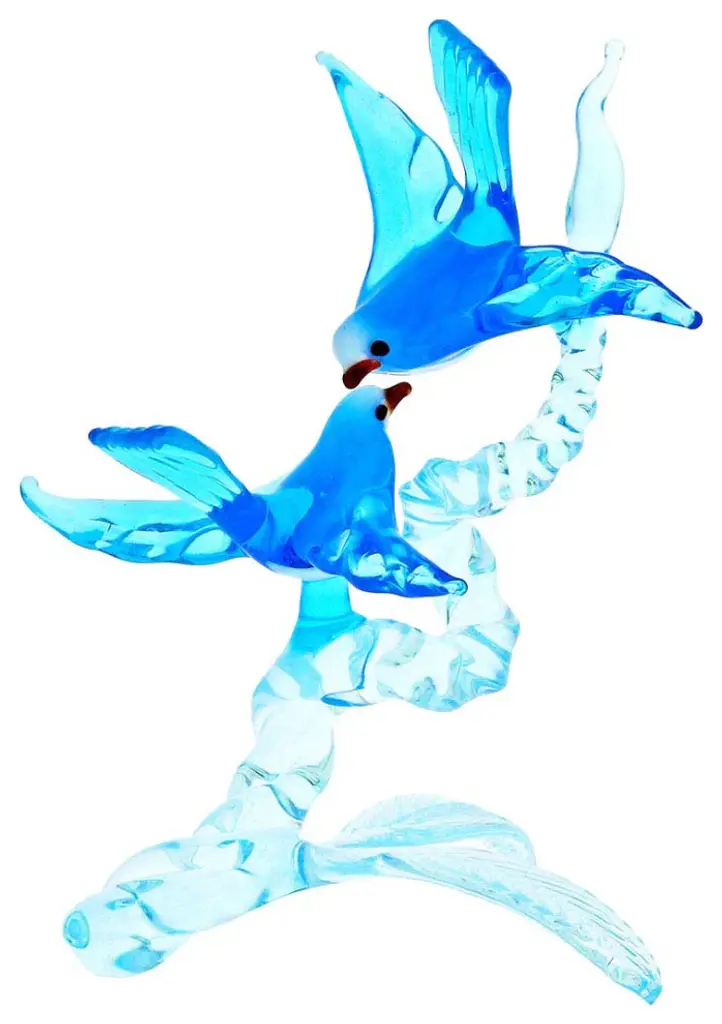 Instantly transport yourself to Venice with this beautiful Murano Glass bird sculpture showcasing the mastery and artistic talent of Murano Glass masters. In this wonderful representation of timeless romance, two charming Murano doves with their outstretched bright blue wings lean close to each other on an exquisite aqua-blue spiraling tree branch. A symbol of peace and love, this pair of Venetian doves makes a great gift to your family, friends, or loved ones, especially perfect for weddings, anniversaries, birthdays, Mother''s Day or Valentine''s Day.Meticulously handcrafted by famous third-generation Murano Glass masters, this Venetian figurine can complement any interior design and add a perfect accent to a room. Measurements: The Murano Birds sculpture measures 5 inch high and the width of the base is 2 inches. The Murano sculpture is a true work of Murano Glass Art and is accompanied by the certificate of authenticity.Because each item is a unique work of art made by hand, slight variations of colors and patterns are possible.
