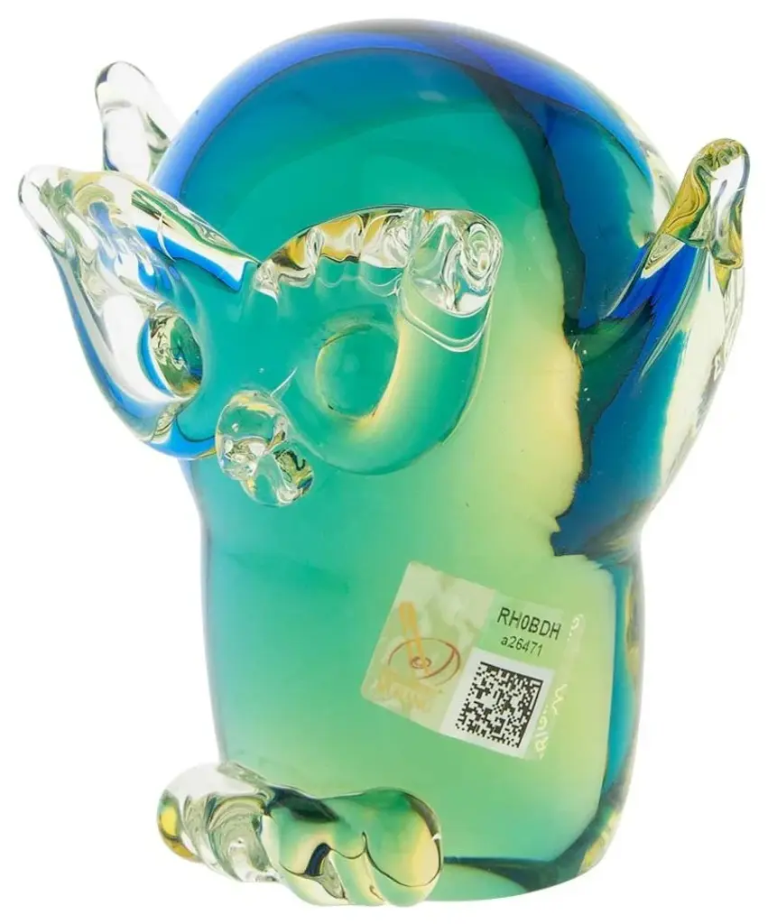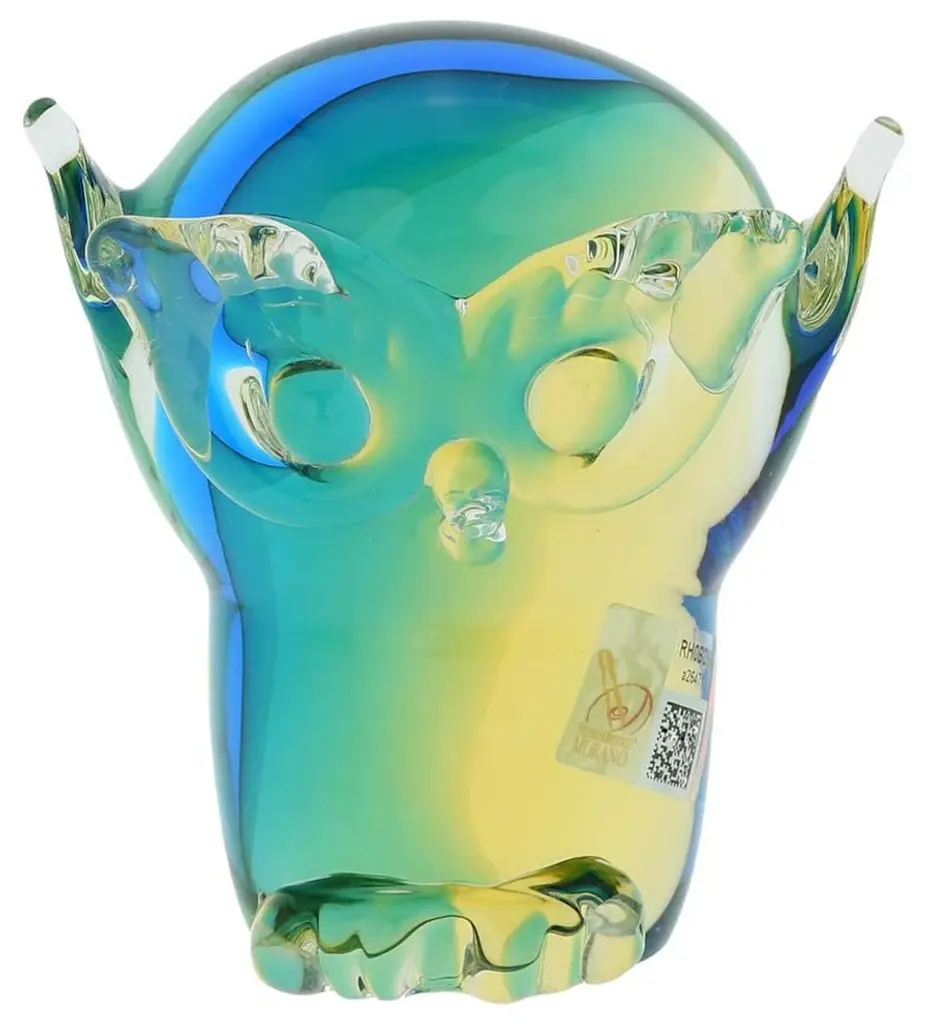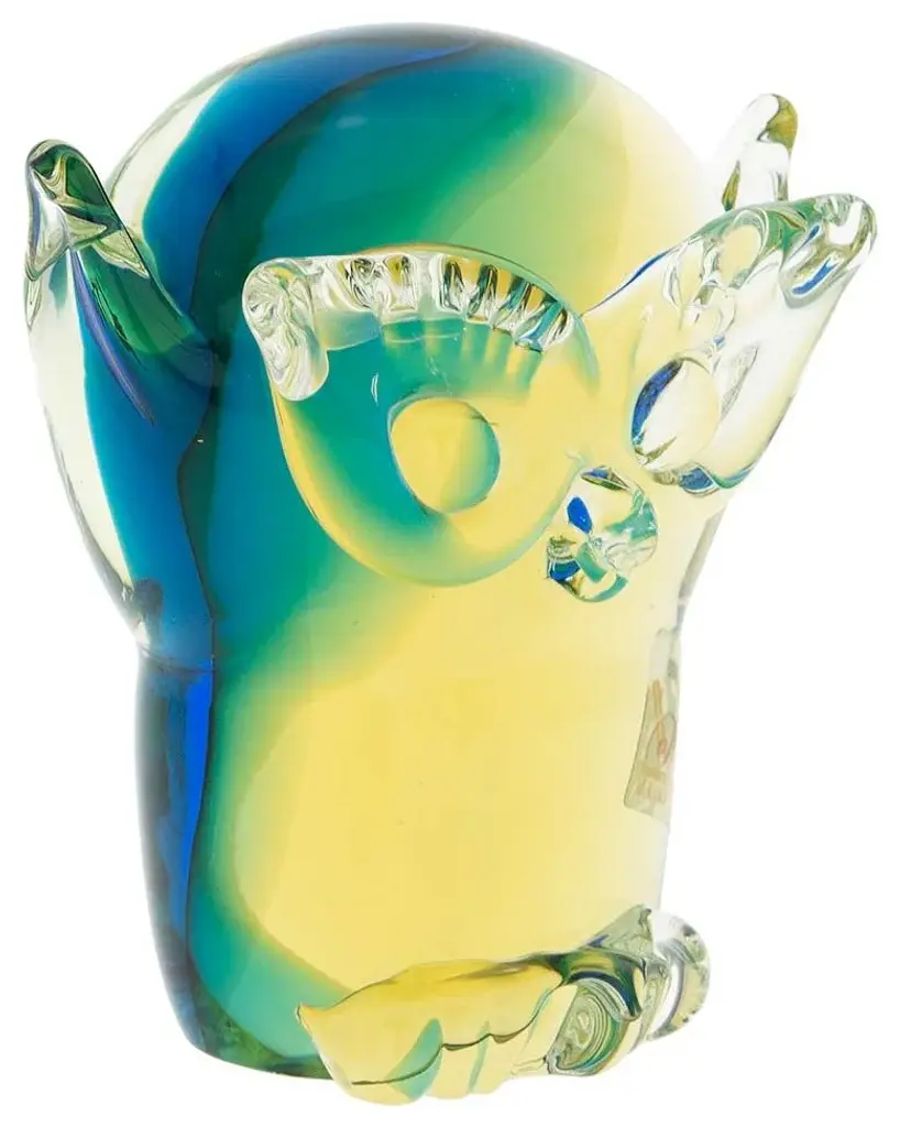 A symbol of wisdom and femininity, this Murano Glass owl adds a touch of elegance to any home or office. This owl was designed and handcrafted on the Venetian island of Murano in a family workshop, where glass masters have been practicing this craft for generations. Beyond just being a beautiful home decor piece, this glass owl is an artistic representation of the mystery that surrounds Venice and one of its oldest traditional crafts.Murano Glass stands apart from the rest of global glassware by the quality of raw materials used and the strict adherence to century-old methods and techniques, resulting in unique appearance and consistently high quality. This owl was crafted using Sommerso technique, where colors seem to be laid on top of each other without mixing up. This requires unparalleled skills and experience, which only exists among the top brass of Murano Glass masters. This owl emanates Venetian mystique and romance, and reminds us of Venice''s fragile beauty. It is a fine gift for the holidays and special occasions, which will surely become a family keepsake.• Measurements: this owl sculpture measures 5 inches in height and 4 inches in width. Depth is about 3 inches. The weight is around 2 lbs.• The owl is handcrafted in a family workshop on Murano Island in Sommerso glass-making technique.• This bird sculpture comes with the sticker of Murano Glass consortium and the certificate of authenticity.• Because each Murano Glass piece is a work of art made entirely by hand, small variations of patterns and colors are possible, and no two pieces are the same. These are not defects but the very features by which you can recognize authentic handmade Murano Glass.