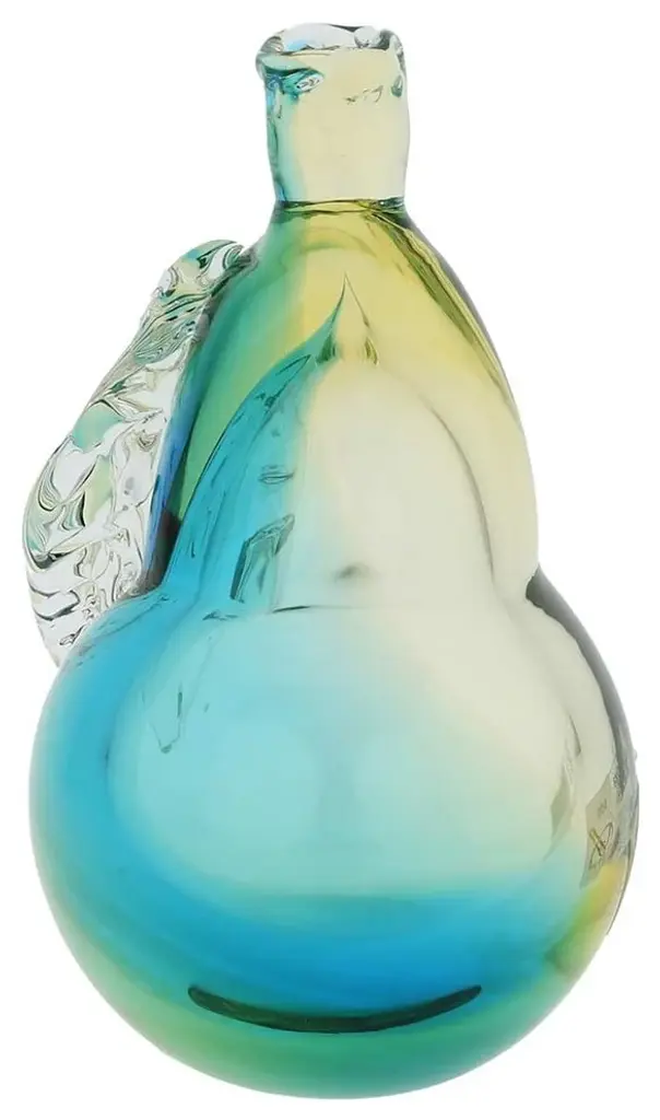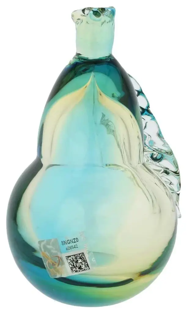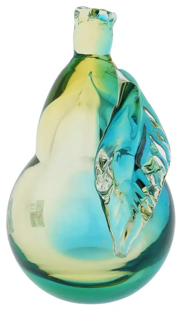 An elegant piece of Murano Glass Art, this pear adds a touch of Venetian beauty in any home or office. Finely designed and painstakingly handcrafted by the top masters in one of the oldest traditional workshops on Murano island, this Murano pear, stands for the richness of Murano Glass artisan tradition. In many cultures pear symbolizes affection and inner peace, which makes it a great gift for many special occasions, from engagements and weddings, to birthdays and anniversaries, as well as Christmas and other holidays. The gracious form, the rich colors that seem to flow inside the pear, and the use of complex Sommerso glass-making technique created by Murano Glass artists almost a century ago, all support Murano"™s reputation of the global center of excellence in contemporary decorative art. This pear conjures up images of blooming orchards and brings you peace and tranquility with a flavor of Venice. This is a work of art that will stand the test of time and will become a family keepsake treasured for generations.• Measurements: the pear sculpture measures 5-1/2 inches in height and 3-1/2 inches in width. The weight is around 1-1/2 lbs.• The pear is handcrafted in a family workshop on Murano island by masters who have been practicing their craft for decades.• This fruit sculpture comes with the sticker of Murano Glass consortium and the certificate of authenticity• Small variations of colors are possible as each pear is crafted entirely by hand. No two pieces are exactly the same, each pear is unique. This is not a defect but a treasured feature of authentic Murano Glass.