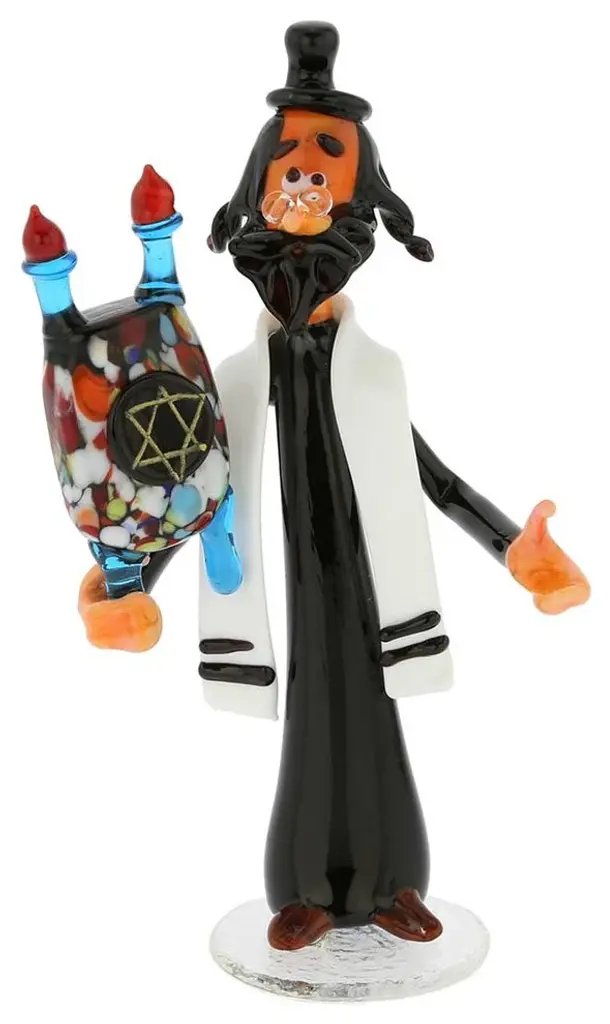 Venice has been a large center of Jewish life and culture in the middle ages, with the vibrant Jewish community that included people of Ashkenazi, Levantine, and Sephardic origins, who fled persecution in the hostile parts of Europe. While far from being a liberal society, Venice was nevertheless more tolerant of Jews than many other places in the middle ages, and despite their relative isolation, Jewish people took part in many aspects of Venetian life, including medicine and commerce. Infamously known as the first ghetto in the world, the Venetian ''getto'' (in Venetian dialect) was a place where Jews lived, practiced their religion, treasured their cultural heritage, and it is where Jewish life continues today, albeit on a much smaller scale.This meticulously crafted rabbi created by local Murano glass artisans stands as the reminder of the thriving Jewish culture and religious tradition that existed in Venice for over 500 years and symbolizes its continuity and strength. Holding Torah, a well-known symbol of Judaism, this wise scholarly Murano Glass rabbi sustains the light of Jewish heritage and symbolizes endurance and vitality of Jewish culture.Bring this fine Venetian sculpture to your home to carry on the light of Jewish heritage or give it this gift to your Jewish friends or loved ones for Hanukkah or just because.• Measurements: The rabbi sculpture measures just under 5-1/2 inches in height.• Made entirely by hand in a traditional Murano workshop by a family that has been making Murano Glass for several generations.• The sculpture comes well packaged to avoid damage in transit and comes with the certificate of authenticity.• Because each Murano Glass Rabbi figurine is crafted by hand under a small flame, each one has a unique look, including a unique facial expression. In addition, some variability in the shapes, patterns, and colors is to be expected.