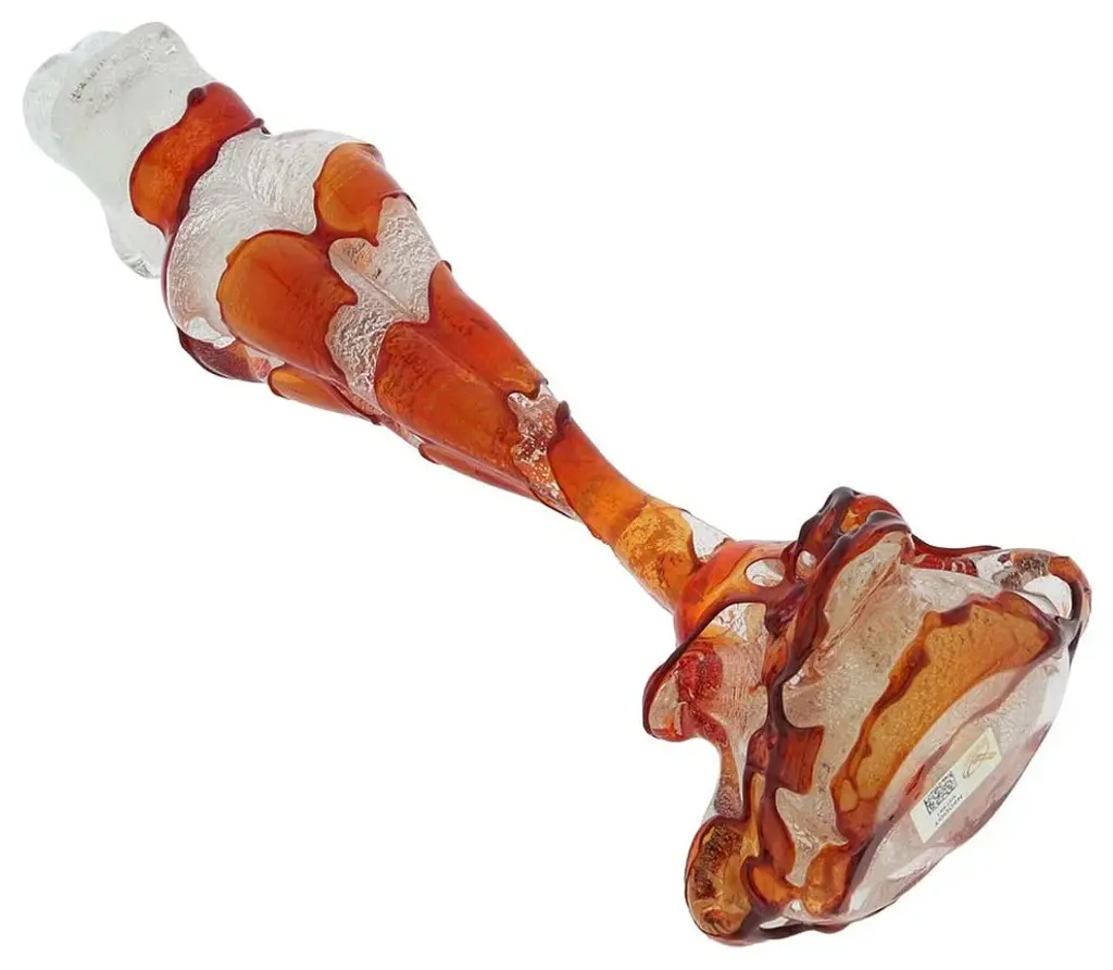 Directly from Venice, the most romantic city in the world, comes this gorgeous Murano Glass Lovers statue crafted in Sbruffo technique. The stunning work of art created in the ancient method by Murano Glass masters, this Lovers statue has elaborate design that will leave you mesmerized. Drawing on modern art trends as well as classical tradition, the sculpture depicts stylized male and female figures united in a tight embrace, their bodies symbolically merged together. With Murano''s signature Sbruffo look featuring uneven raised texture of the glass, the Lovers also have swirls of warm topaz, amber, and red colors set against sparkling silver leaf. Showcase this gorgeous sculpture in your home, or make a unique meaningful gift to your loved one or the special people in your life for momentous occasions such as engagements, weddings, anniversaries, or Valentine''s Day.• Measurements: This Murano sculpture is approximately 14 inches tall. The width of the base is 5 inches. The weight is about 5 lbs.• This beautiful authentic Murano Glass Lovers sculpture was created by hand using only traditional glass-making methods by a third-generation Murano maestro, whose work is displayed at exhibitions, private collections, and in museums worldwide.• The statue features the etched signature of the master, an attached sticker of the official consortium of Murano glass masters, and is accompanied by the certificate of authenticity that further proves its Murano origin.• Because each item is a unique work of art made by hand, slight variations of colors, patterns, and shapes, are possible.