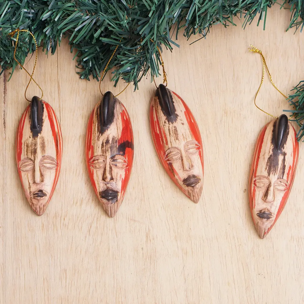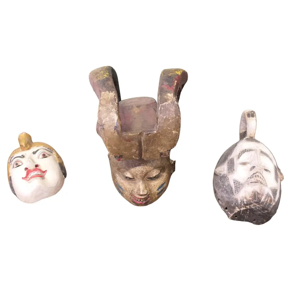 Glazed Masks 20 X 7.5 Inch Sculptures, Set Of 3