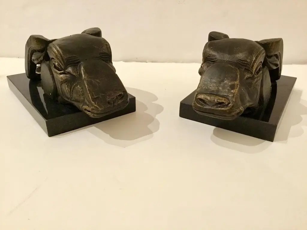 Stylish transitional Pair of Bronze Bull Sculptures