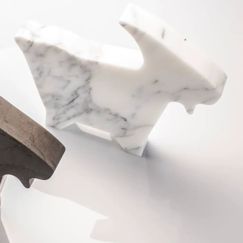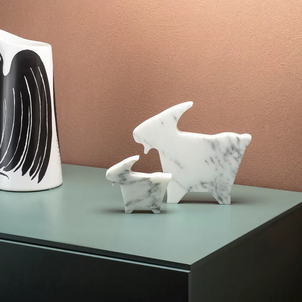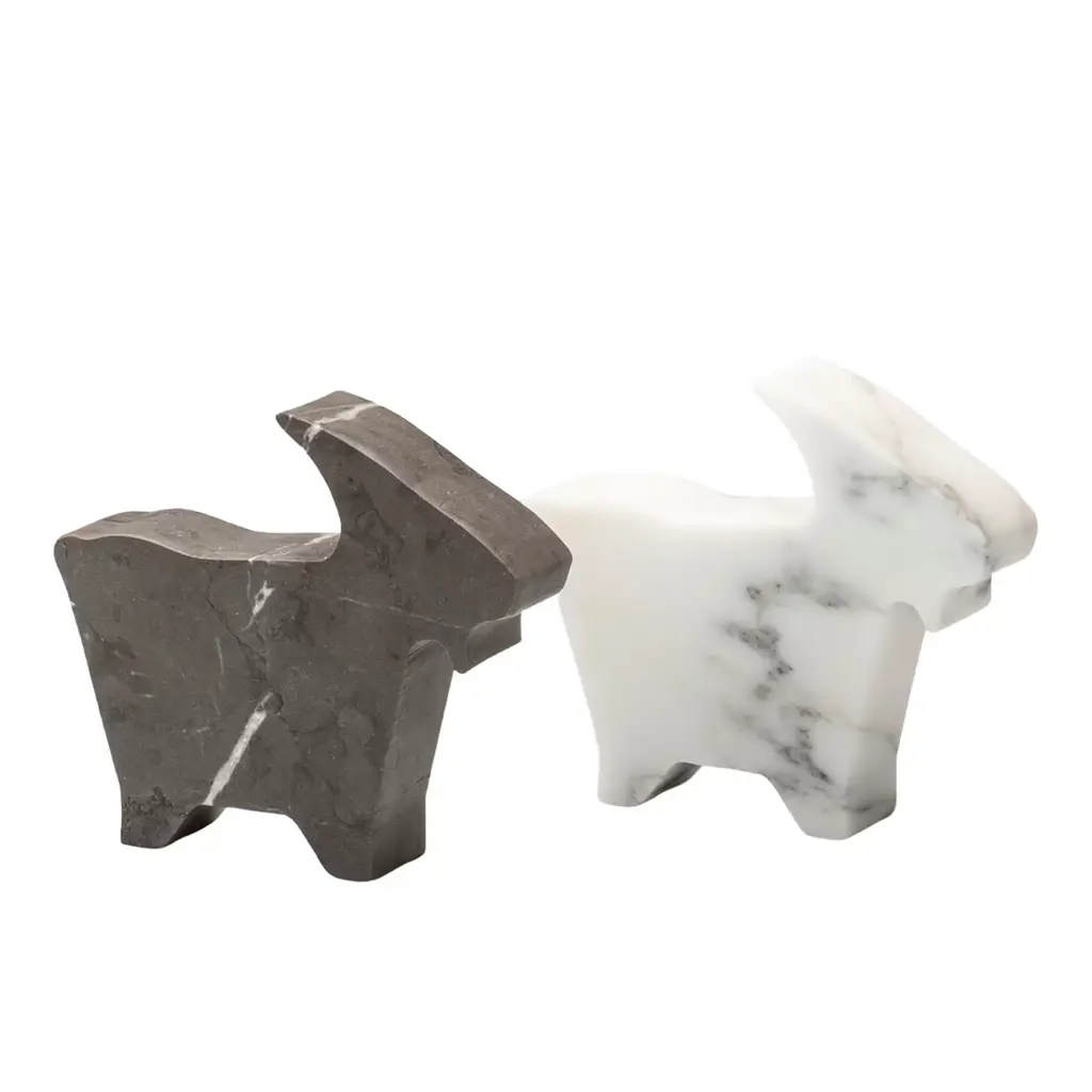 Keeping loose sheets firmly in place with a dash of playfulness is possible with this stunning statuette, goat-shaped design from the Factory series by Alessandra Grasso. Perfect as a purely decorative piece, it is fashioned of white Carrara marble and marked by delicate natural veins that make it truly unique. Two larger sizes and a variant in gray Grafite marble are available as well as bunny, sheep, and pig counterparts.