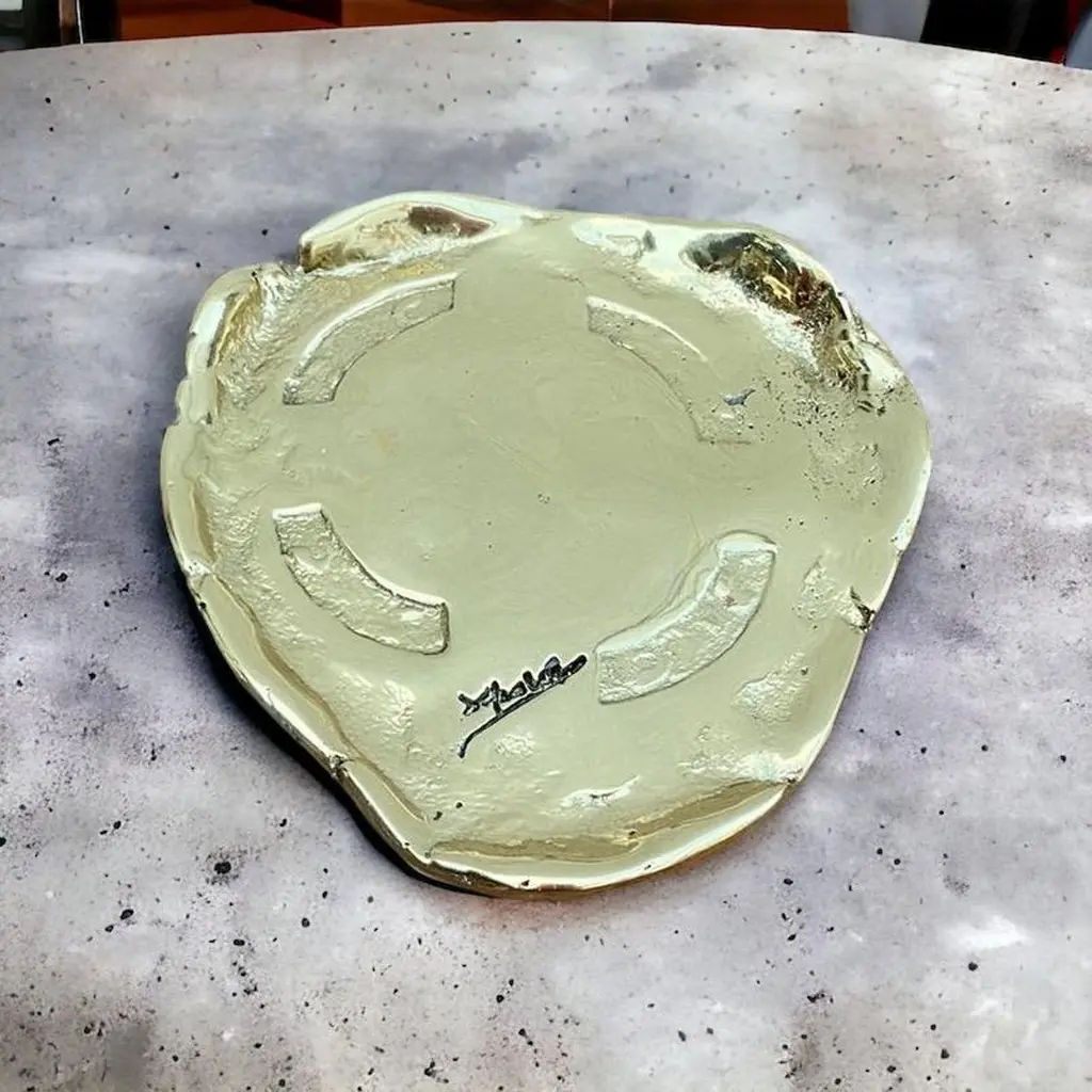 The decorative Celtic Coaster was created by David Marshall, it is made of sand cast brass. We can engrave this piece with your Initials or Logo, makes a beautiful Wedding or Company Gift.Handmade, mounted and finished in our foundry and workshop in Spain from recycled materials.Certified authentic by the Artist David Marshall with his signature.The Artist is inspired by nature and land scape making functional art and sculptures out of recycled materials.We work with arquitects, interior designers and private clients to create specific designs, signage, staircases etc. for Homes, Hotels, Restaurants.Awards for Charity Foundations like Global Gift,Bespoke Awards for companies with engraved personal Logos, Golf Trophies for Golf Clubs like Finca Cortesin where the important Solheim Cup 2023 golf Tournament will take place.One of the qualities of any sculpture and decorative design lies in the ability to bring its surrounding space into order.
