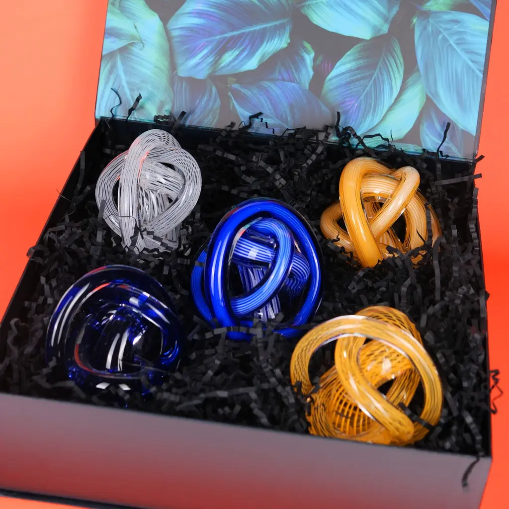 The Cobalt Loop Hand-Blown Glass Sculpture is a bold expression of movement and artistry. Twisting and interlocking in an intricate knot, this sculptural piece is formed from deep cobalt blue glass with fine linear detailing that reflects and refracts light from every angle. Its striking color and dynamic form bring energy and sophistication to contemporary interiors, making it the perfect conversation piece for shelves, desks, or display pedestals. Each curve tells a story of craftsmanship, precision, and timeless design.