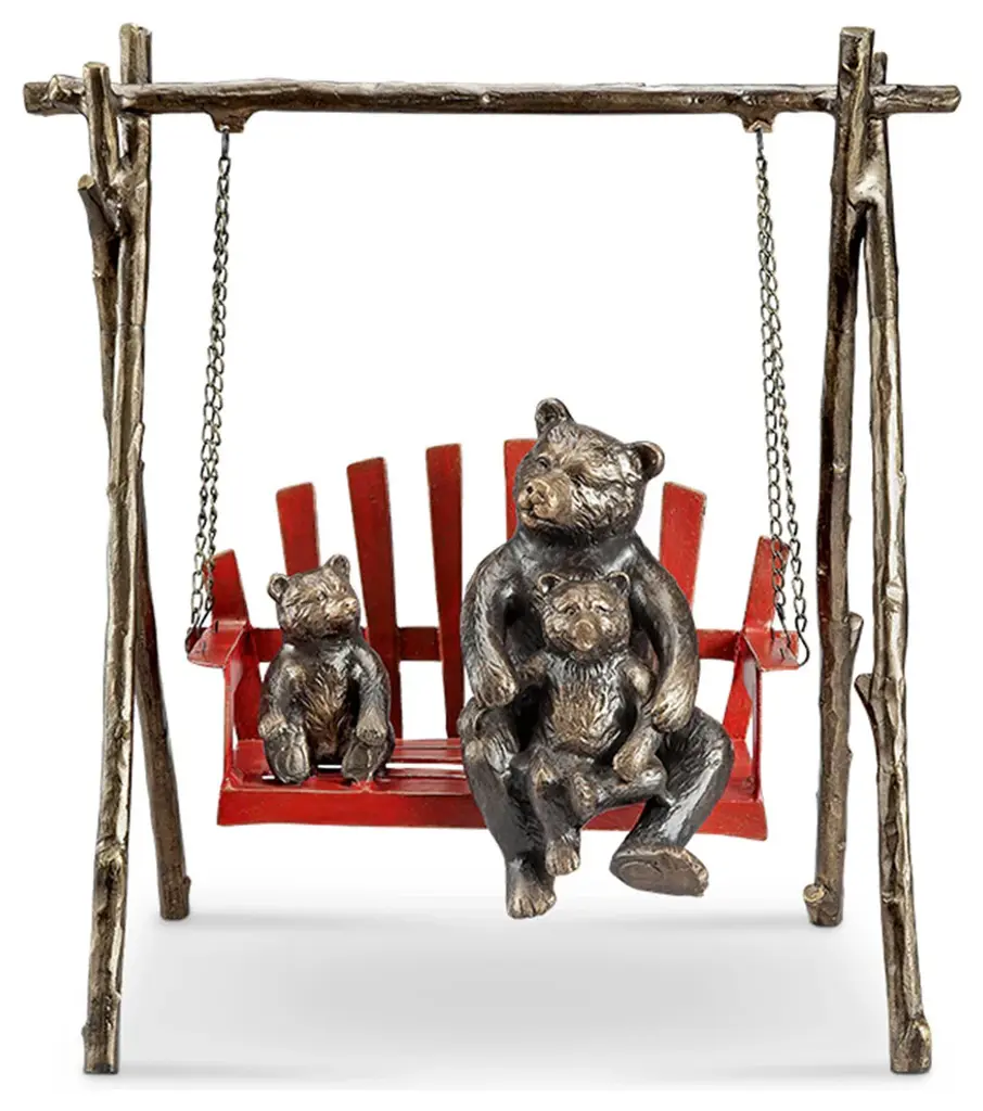 Graceful Bear And Cubs On Porch Swing Garden Sculpture