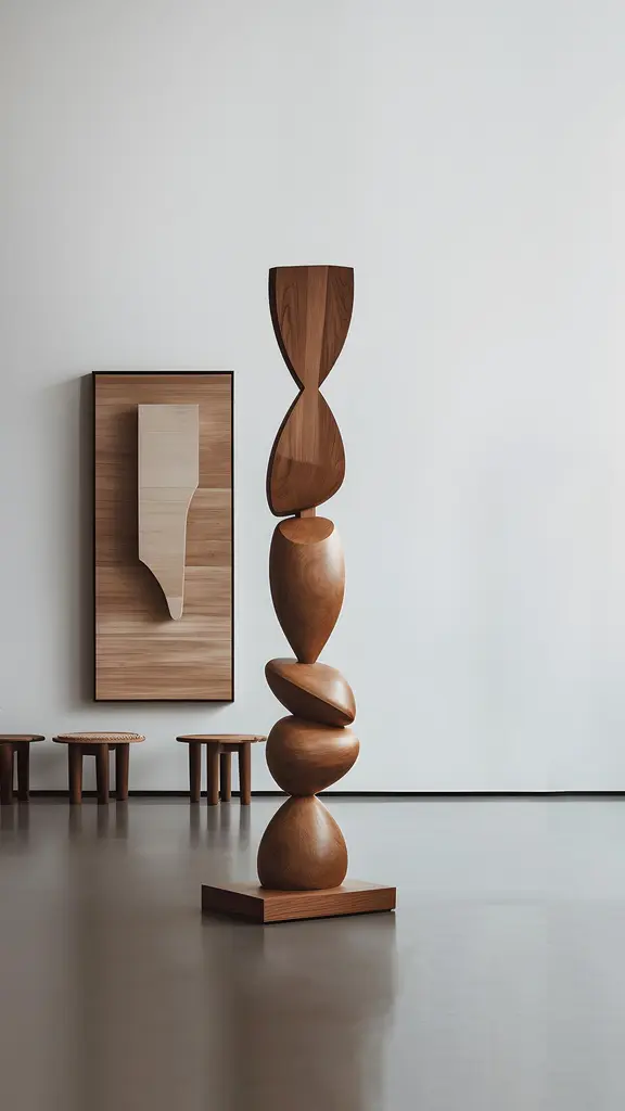 Graceful Wooden Standing Totem Still Stand No24, Nono’s Escalona Collection