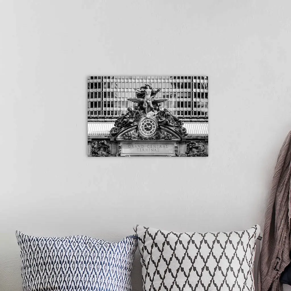 Mercury, Hercules, and Minerva sculptures on the Grand Central Terminal facade in New York city.
