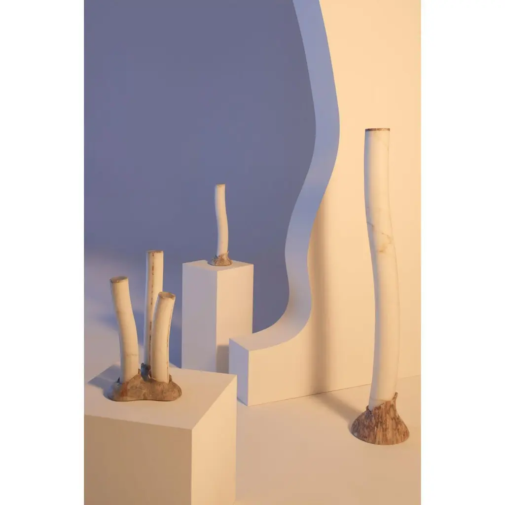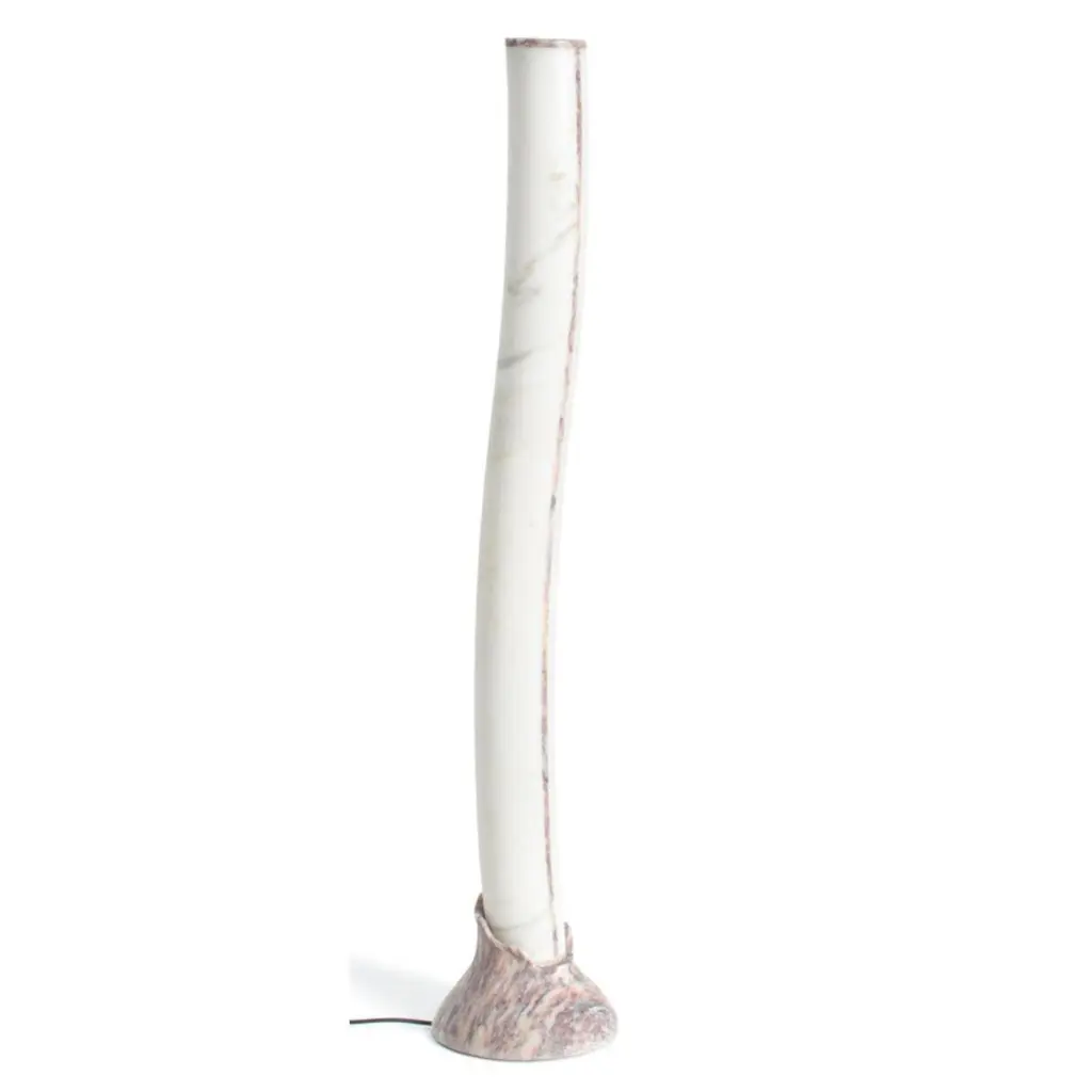 Grand reef floor lamp by Jacopo SimonettiThe Reef Light CollectionDimensions: 28 x 143.5 cmMaterials: bianco michelangelo, fior di pesco carnicoAll our lamps can be wired according to each country. If sold to the USA it will be wired for the USA for instance.“The sculptor doesn’t try to translate his thought into marble: he thinks in marble, directly, as if everything were already marble,” wrote André Gide. His words perfectly sum up Jacopo Simonetti’s work and style. The young designer has created a lightweight yet eternal lamp, vibrant and bright yet porous. He thought in marble, like someone who has long known and worked with this exquisite material, drawing inspiration from the gentle, sinuous lines of coral reefs. Marble and coral, both of them exquisite and delicate, elegant and natural materials. The result is a lamp whose light pairs with the uniqueness of marble to recreate the allure of the marine world for a cosy, exclusive ambience.Since he was born at the foot of Apuan Alps he was surrounded by white marbles, dusted craftsmen and used to hear the music of machines working that pure material. He gained craftsman experience in the workshops of his Pietrasanta, renowned center for marble working and sculpture. He furthered his studies at the Carrara Academy of Fine Arts, where he learned also to pair this exquisite material with modern design.Jacopo Simonetti is a young talented designer that, in spite of its age, masters the matching of ideas, marbles and technology. His work stands out for the creation of products that combine classical simplicity and beauty with the dynamic and functional nature of modern design.