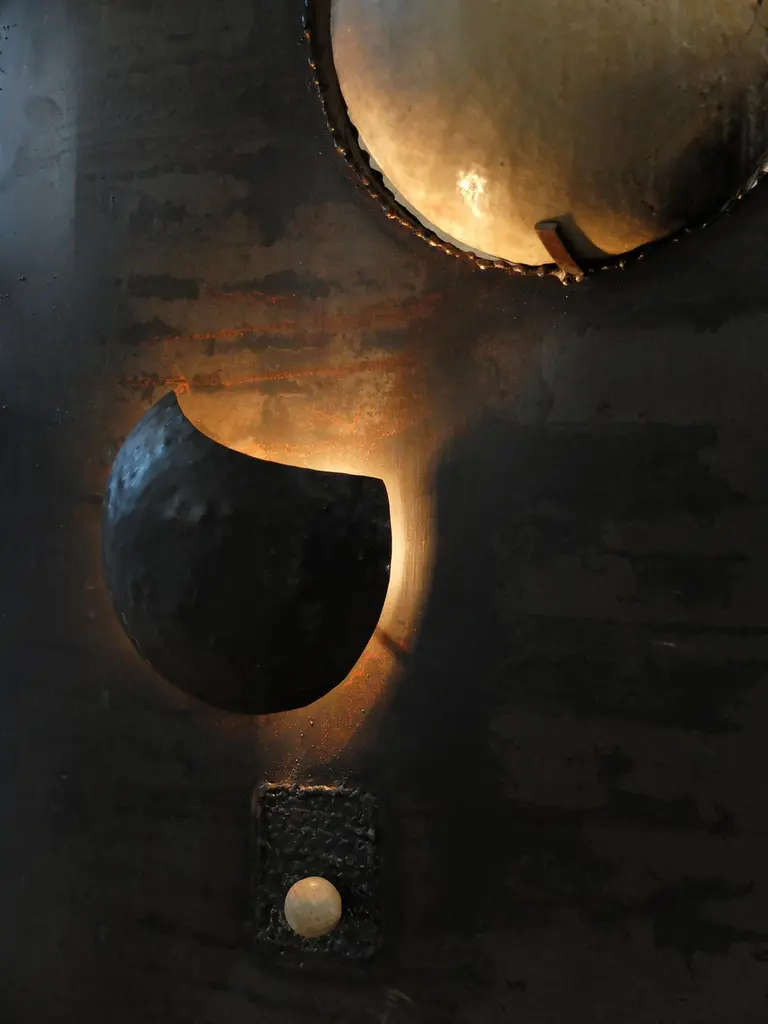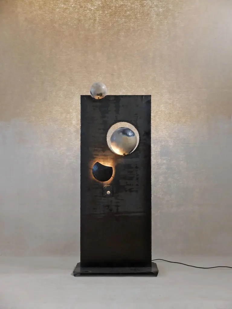 Grande Conjonction Light Sculpture by AltinDesigned and developed by Yasmine Sfar and Mehdi Kebaier.Dimensions: D 70 x W 45 x H 170 cmMaterials: Metal, ceramic.Light sculpture in clay and metal.OrbitA journey to a new dream world that we could call «home».Original creations in limited edition."Let the journey begin.Looking back to what our planet Earth has taught us, we have dreamed of the new world we mightone day call home.You will find here eight original creations that are shaping the landscape of this outer world that constantly remind us of our own humanity."Yasmine & MehdiAll our lamps can be wired according to each country. If sold to the USA it will be wired for the USA for instance.