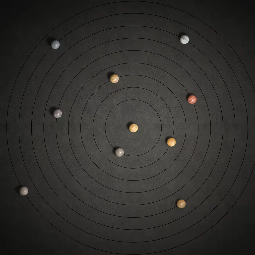 The Sun, associated with the zodiacal sign of the Leo, is actualized in this enthralling paperweight, one of twelve different pieces from the Gravity Zodiac Collection. Splendid also as a simple sculpture, the sphere sublimely showcases the unique features of the yellow travertine marble used in its crafting. The sphere can be rotated on the brass base to simulate the movement of celestial bodies.