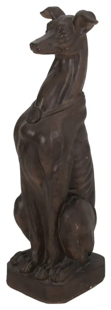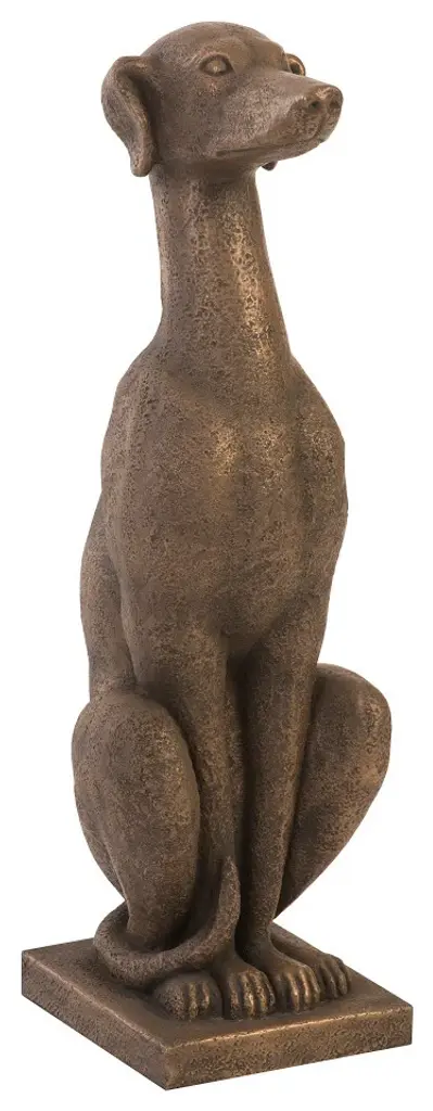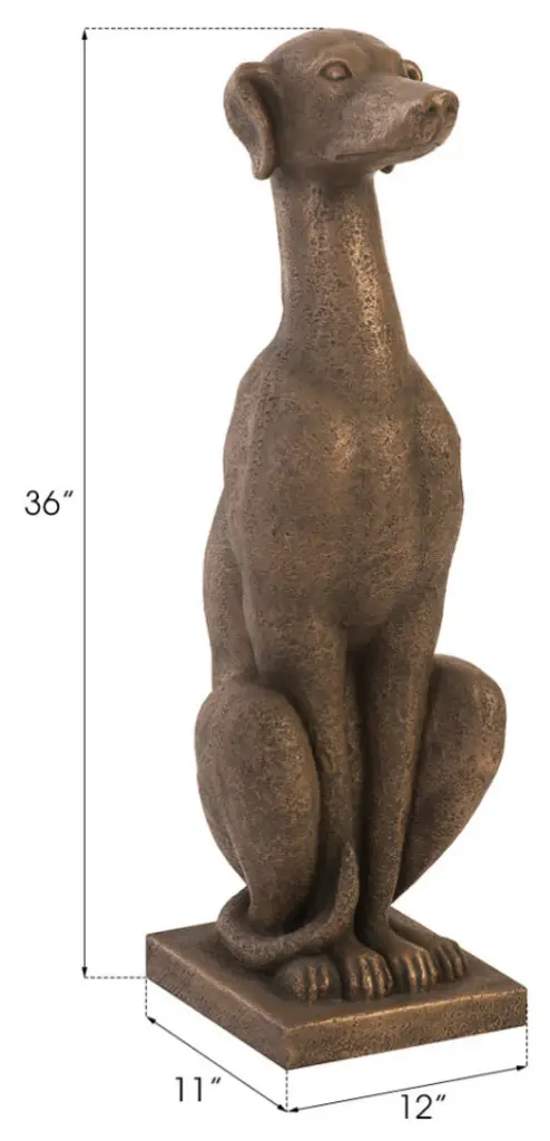 Our Greyhound Sculpture is cast from an artisan-grade resin mold and finished in actual bronze powder. It sits regally on a matching square base and measures over three feet tall. A perfect statue for any interior or exterior. Also available in silver leaf.