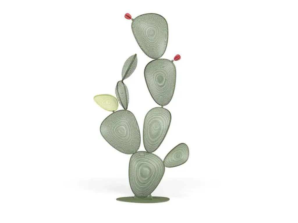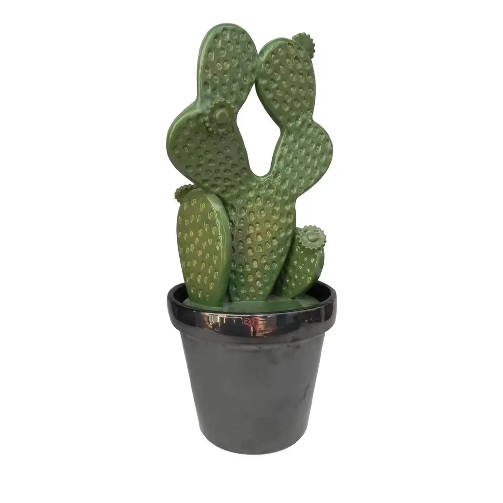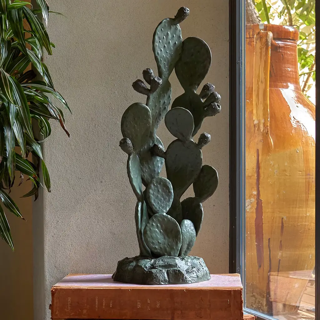 A playful design that will deceive the eye for its meticulously realistic shape, this exquisite prickly pear sculpture will be an iconic accent piece for an entryway decor or an outdoor area. Handcrafted of ceramic with minute attention to detail, it is lacquered in a green hue with delicate shaded brown and dark green details.