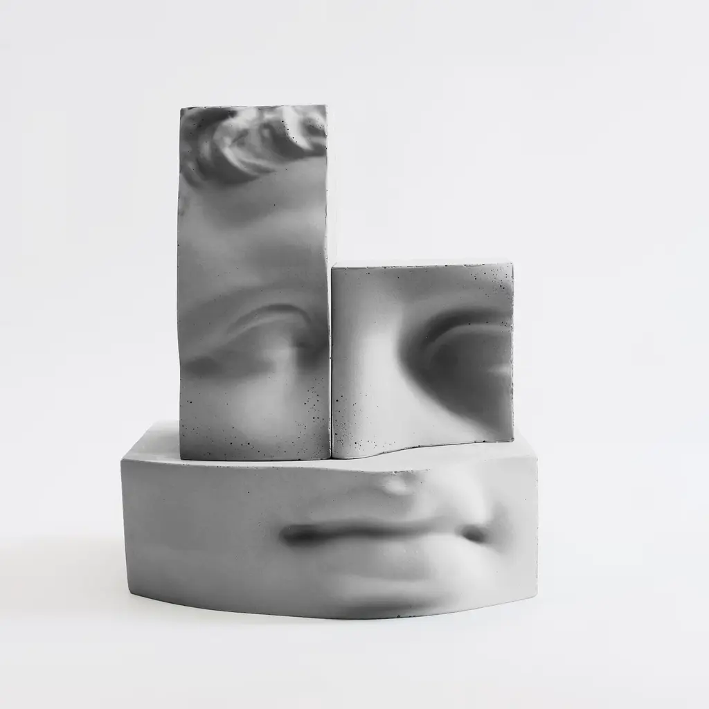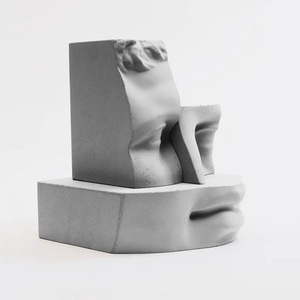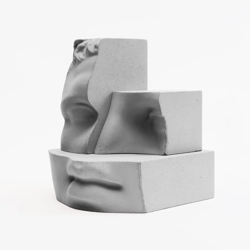 Hermes is a concrete sculpture. It's part of a large work that is also photographic: 'Digital Journey into the Classic’, where the original classic is provocatively manipulated, cut and distorted. The project draws from an archive of classical Greek and Roman beauty. A bulky heritage for those who no longer seek balance and perfection of form, but still look to the past as an immense source of inspiration. Hermes becomes a real physical sculpture, composed of 3 pieces that can be superimposed.
