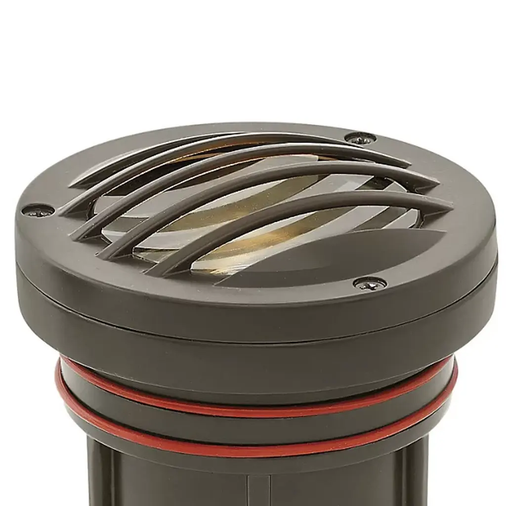 Stylish and sturdy up lighting. The Grill Top Well Light by Hinkley Lighting is the perfect landscape accent for creating silhouettes, drama and shadows. Use it to highlight a sculpture or stately tree, brighten up a walkway, border or patio or edge a driveway. This versatile fixture is crafted from cast brass for durability and its clear glass lens emits a bright beam that provides added function, safety and beauty to exterior spaces.