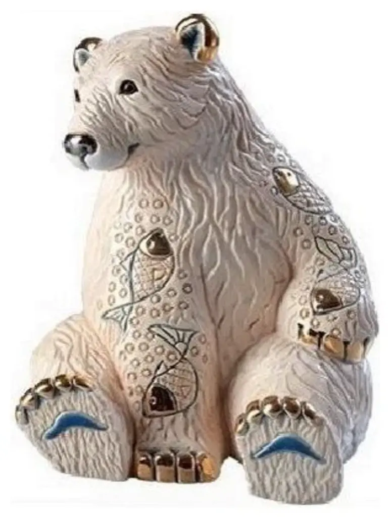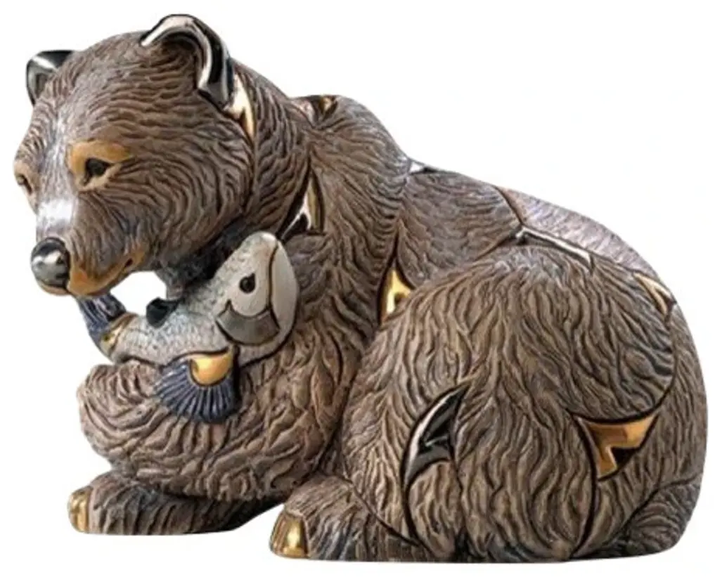 Piece launched in 2010Hand-carved ceramic grizzly bear sculpture.. each piece uniqueAccented with rich gold trimHand-enameled colors individually fired for each hueArtistic style influenced by Dali, Picasso, and MiroWeight is approx. 3 lbs. From celebrated Uruguayan art company De Rosa Collection, this exquisite Grizzly Bear Figurine adds vibrant color and exotic beauty to any room. About the De Rosa CollectionThe De Rosa family has been intimately involved with ceramics, since 1945 when the founder, Jorge De Rosa attended the Argentinian National School of Ceramic Design. These South American ceramic works of art have been decorating homes and offices world wide since that time. Although the process has changed somewhat over the years the elegance and sophistication of the De Rosa Collection figurines has been secure. From the vibrant blue dolphin sculptures to the sleek black panther figurines, each piece in the De Rosa Collection is a unique piece of fine ceramic. Their artists take inspiration from surrealist art and South American artists like Dali, Picasso, and Miro to create these stunning ceramic wildlife figurines. Each figurine is first hand carved by talented artisans. Bold enamel coloring is then applied, again by hand, with a firing of each piece with each new shade applied. The figurines are then finished with a lustrous 24k gold or platinum trim giving each whimsical wildlife figurine its singular signature of elegance. Because of this exceptional process no two pieces from the De Rosa Collection will be exactly alike.