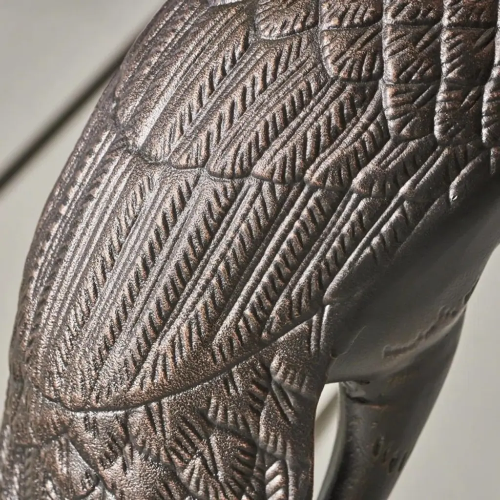 Enhance your outdoor space with the Gulches Elegant Crane Garden Decor, featuring stunning 39-inch and 43-inch shiny copper crane statues. These exquisite pieces are crafted to withstand any weather, offering a maintenance-free addition to your garden or patio. The elegant design of the cranes, one preening and the other standing tall, adds a touch of sophistication and charm to any landscape. Perfect for creating a tropical paradise, these statues require no assembly and are ready to elevate your outdoor decor.