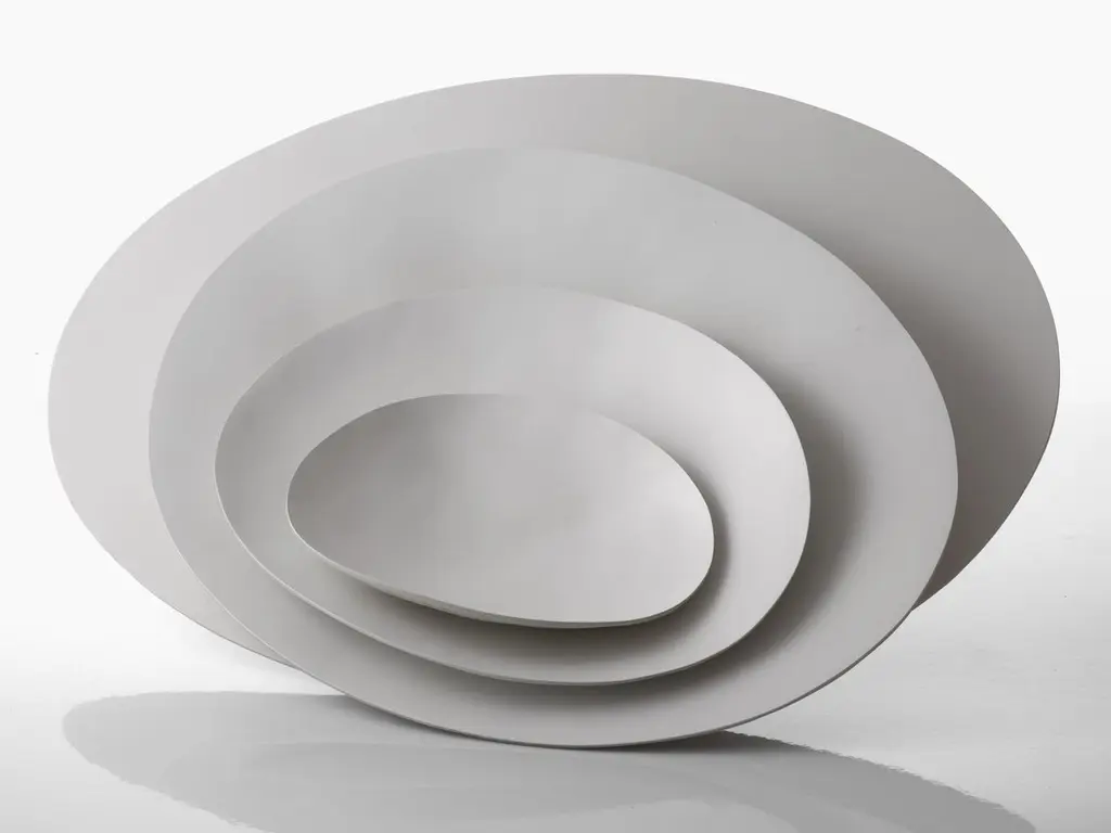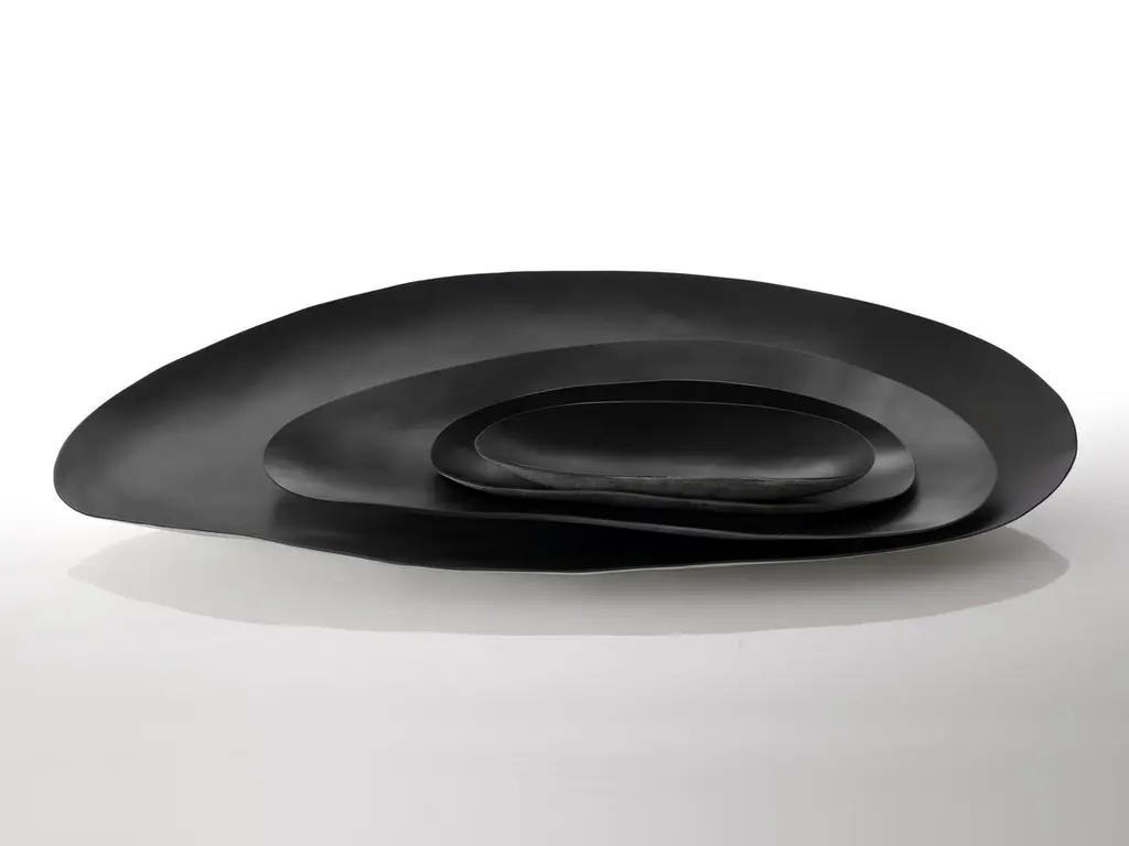 Guscio Bowl by ImperfettolabLimited EditionDimensions: 114 x 54 x H 7Materials: Fiberglass.Imperfetto LabWho we are ? We are a family.Verter Turroni, Emanuela Ravelli and our children Elia, Margherita and Eusebio.All together, we are separate parts and their expansion.The laboratory is in the care of Verter.From the sketch on paper he mixes materials, shapes and colours to the definition of the object.His intuitive and visionary research is performed with the complicity, recognition and practical support of his brother Erich.Emanuela is the voice of a vivid and silent work.She connects Imperfettolab with the other and with the rest of the world, respecting its nature and identity.She watches over its wholeness and authenticity.The playful spirit is entrusted to our children.They are the ones who test our works, certify their durability, functionality and enjoyment.We believe it is their expression, after all, that validates and makes our work universal.Since 1992, our thoughts and actions have moved, grown and taken shape in the land of Romagna.Between hills of cherry and olive trees, cultivated plains and piles of recyclable steel and iron.In between, the ancient Roman road via Emilia.A contrasting and mutating landscape that reflects in our furnishing sculptures.Ours is an open space, the times of art and life seamlessly merge.