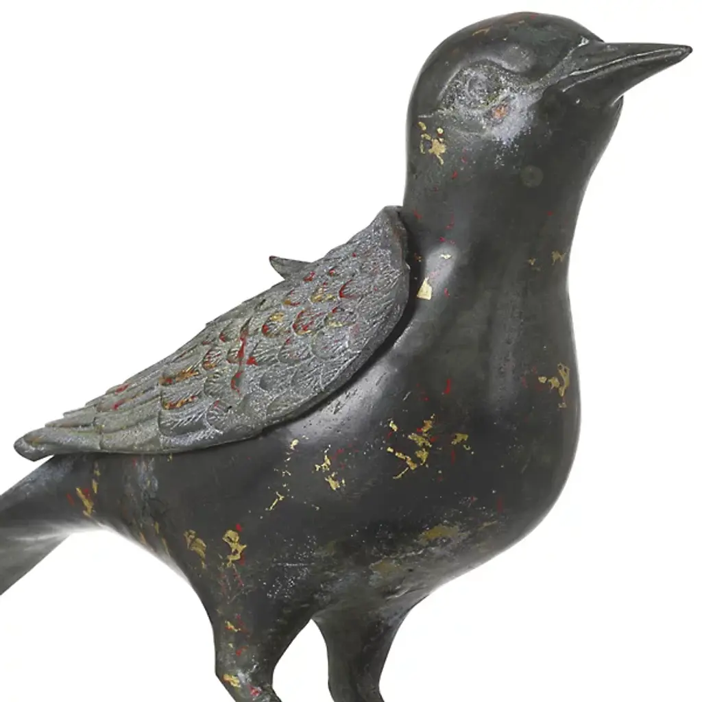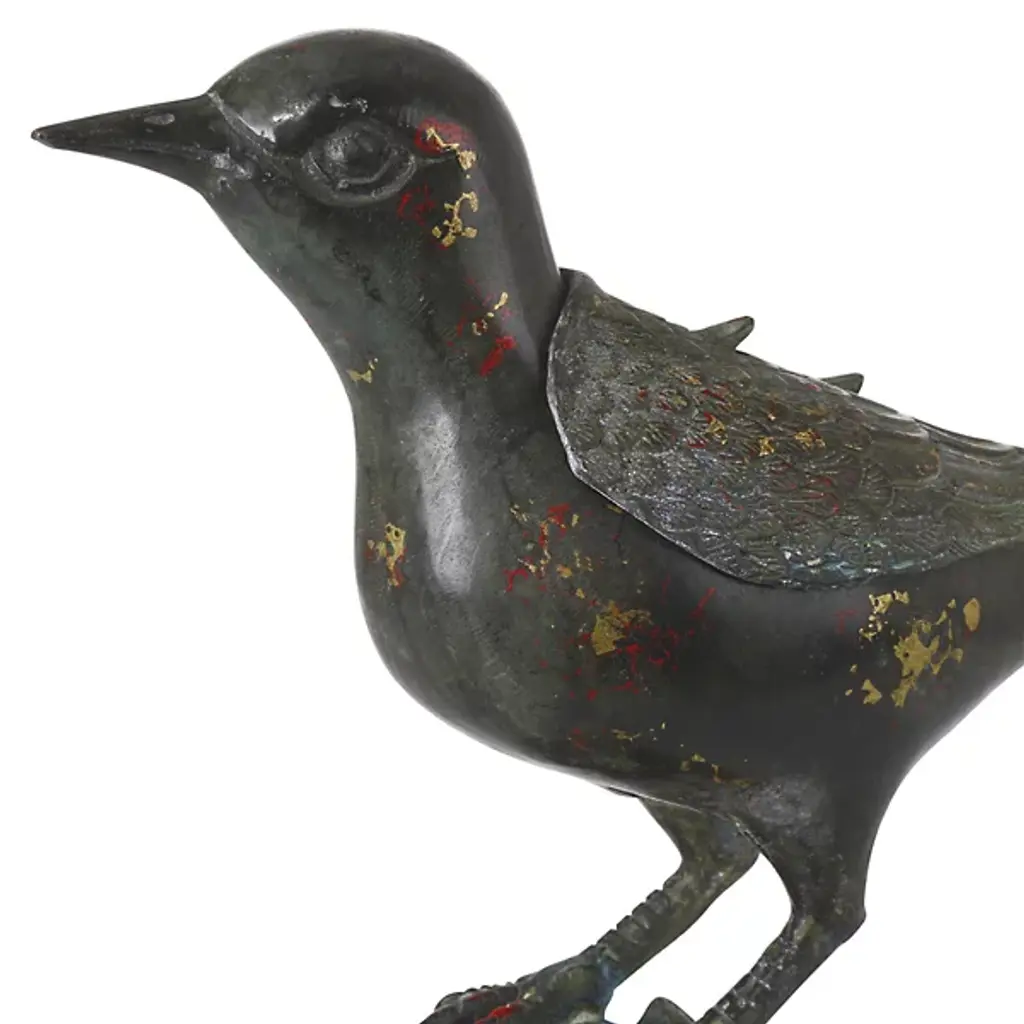 The Han Dynasty Bird Sculpture from Currey & Company draws inspiration from an ancient incense holder, translating historical design into contemporary bronze artistry. This ornate piece captures the graceful form and enduring appeal of its dynasty-era muse through the skilled application of metalworking techniques. To achieve an authentic aged appearance, the surface receives hand-rubbed treatments that create weathered patina effects.