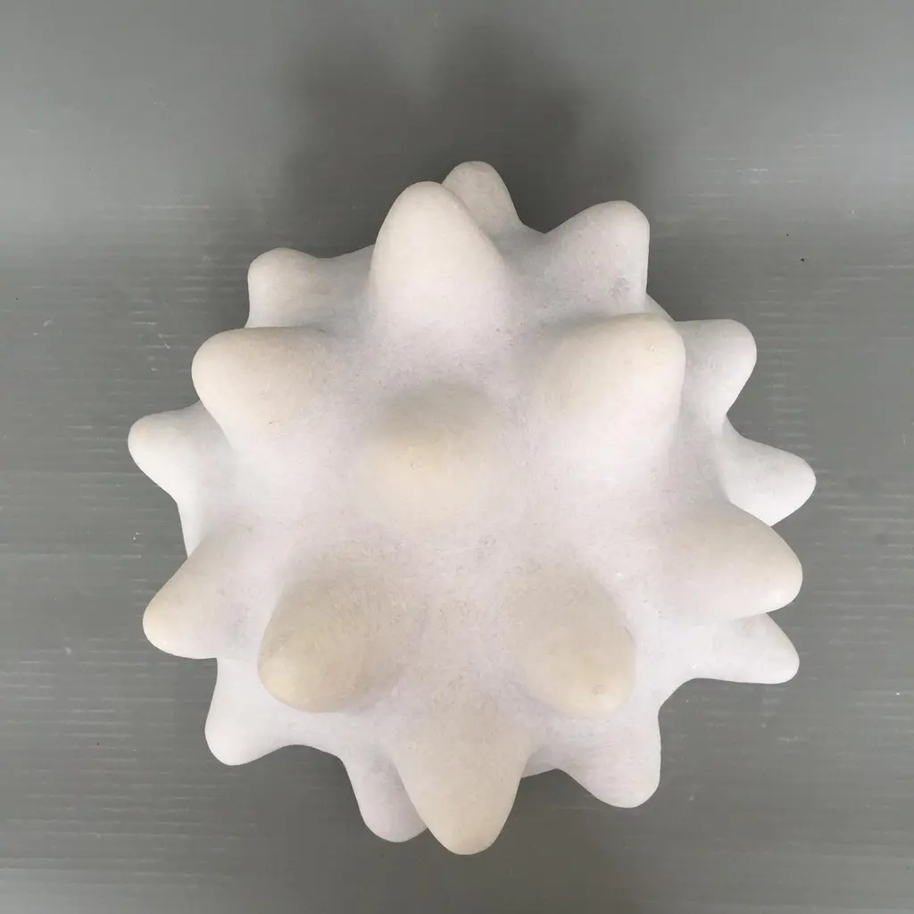 Hand carved marble sculpture by Tom Von KaenelDimensions: D34 x W28 x H18 cmMaterials: MarbleTom von Kaenel, sculptor and painter, was born in Switzerland in 1961. Already in his early childhood he was deeply devoted to art. His desire to bring beauty to the world is Tom von Kaenel’s inspiration, drive and source for the creation of his works.Already during his training as a technical draughtsman and later as a teacher of pictorial design, he devoted himself to painting and three-dimensional work. Tom von Kaenel has exhibited his work in various solo and group exhibitions. For seven years he was represented by Galerie Ute Barth in Zurich.Today Tom von Kaenel lives and works on the island of Naxos. Everything in his environment inspires and shapes his work. He creates objects and sculptures out of Naxian marble in craftsmanship liveliness and timeless beauty.