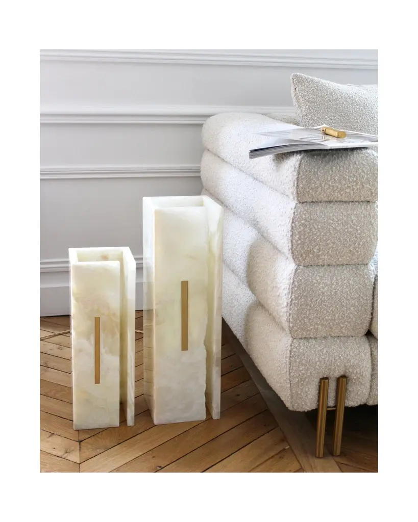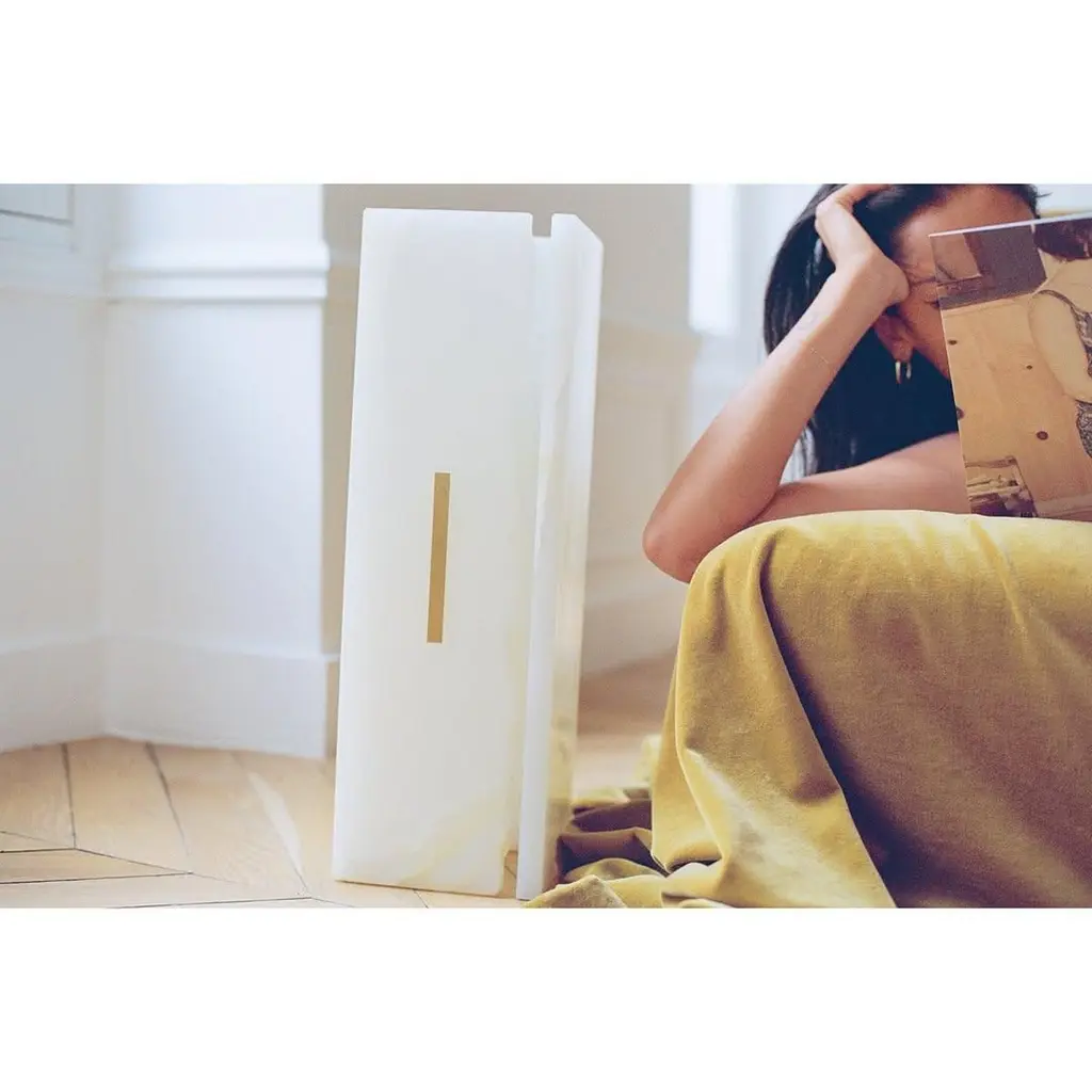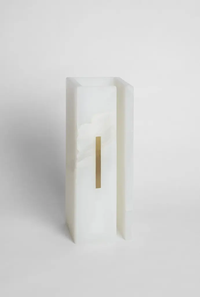 03C pure white onix sculpture by Marie Jeunet.Dimensions: H 40 x L 14.5 cmMaterials: Pure white onix marble.A tribute collection to the exceptional stones that nature offers us, such as onyx or marble. Precious, semi-translucent materials with inimitable veins. Of the minerals steeped in history revealed by light.Minimalist 3-corner design lets light in through an elegant opening vertical, while enhancing the purity of the materials. Made in calacatta viola marble, white, pink or green onyx. Available with a clean opening or a natural break.Marie JeunetBased in Paris, Marie Jeunet is an artist designer working mainly on the diffusion of light.Her delicate and poetic sculptures sublimate the materials used by emphasizing their singularity. The reflections, sparkles and other luminous refractions of her works are invitations to dreams and daydreaming.A delicate balance, a subtle blend of minimalist shapes and dreamlike projections.