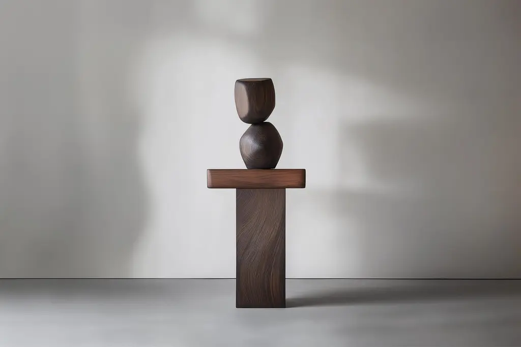 Handcrafted Art Lull No102 – Wooden Totem Sculpture by Joel Escalona———Balance and tension are at the core of these sculptures. The interplay between the smooth, rounded forms and solid, angular bases creates a delicate equilibrium that invites contemplation. Fragile elements seem to find strength in their very vulnerability, constantly negotiating their own stillness. The tension remains present, yet never descends into chaos, evoking a quiet pause, a moment of serenity in the motion of life.The juxtaposition of curved, pebble-like shapes against straight-edged bases mirrors the harmony between the organic and the geometric. These forms feel both natural and sculpted, as though shaped by the slow, deliberate hand of nature and the precision of craftsmanship. It’s as if these pieces rest in a moment of perfect balance—a pause between forces that seem at odds, yet together, create something deeper and more profound.This collection embodies a monumental idea—one that celebrates the subtle tension between fragility and endurance. Though the forms may appear delicate, their strength lies in resilience. Each sculpture stands tall and quietly powerful, offering a sense of solace in stillness, a reminder that stability can emerge from the most unlikely structures.These pieces explore the delicate dance between opposing forces, where solace and tension coexist in harmony. The most meaningful moments in life often come from these pauses, from embracing the quiet spaces between movement. These sculptures whisper a truth—that transformation often finds its roots in stillness, in the spaces between tension and release.Each sculpture is crafted from solid wood in our workshop in Mexico City, ensuring no two pieces are ever alike—not only in form, but also in the natural texture and tone of the wood itself. Just as no two trees are the same, each piece carries its own unique character, shaped by the grain and color variations of the wood. This natural diversity is what makes each sculpture truly one-of-a-kind. These works are made to order, allowing the time and care needed to ensure that every piece reflects its own individuality and beauty, celebrating the organic and the serene pause within the material.——NONO is a Mexican design brand with more than 10 years of experience dedicated to the production of interior furnishings, editions, and custom-made projects. At NONO, we create pieces of extraordinary beauty, accommodating the particular needs and tastes of each client with exclusive high-quality designs.————Some details to consider when placing an order with us:• Catalog images are digitally generated. Actual products may slightly vary in texture, grain, and final finish due to natural material differences. Despite these variations, our expertise ensures each piece maintains high quality and matches the intended design.• All of our products are made to order, and the lead time for standard products is estimated to be 9 to 12 weeks, plus shipping time. However, special pieces or sculptures may require a longer lead time.• We offer customization in dimensions and finish for all of our furniture pieces, which may result in additional charges.• We only facilitate freight services by a third party. The client is solely responsible for any associated import/export taxes, as well as any necessary customs paperwork.• We are not responsible for any damages that may occur during shipping or for any customs-related delays.