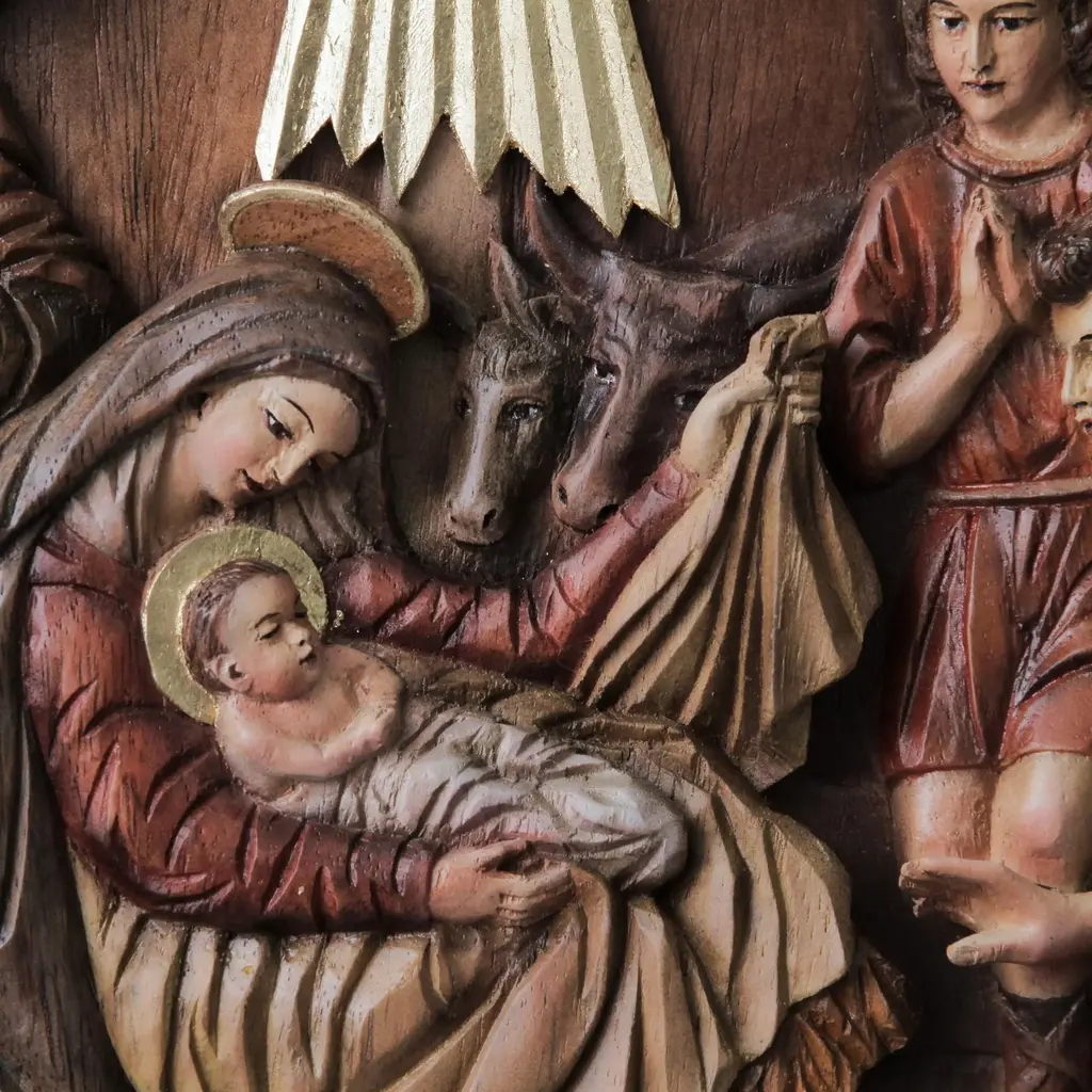 Handcrafted Cedar Wood Nativity Scene Relief Sculpture- Nativity With Shepherds