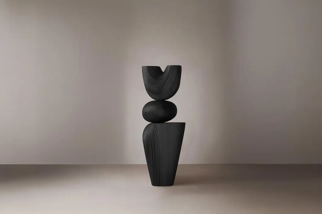 Handcrafted Wooden Sculpture Lull No77 by NONO – Perfect for Artistic Homes———Balance and tension are at the core of these sculptures. The interplay between the smooth, rounded forms and solid, angular bases creates a delicate equilibrium that invites contemplation. Fragile elements seem to find strength in their very vulnerability, constantly negotiating their own stillness. The tension remains present, yet never descends into chaos, evoking a quiet pause, a moment of serenity in the motion of life.The juxtaposition of curved, pebble-like shapes against straight-edged bases mirrors the harmony between the organic and the geometric. These forms feel both natural and sculpted, as though shaped by the slow, deliberate hand of nature and the precision of craftsmanship. It’s as if these pieces rest in a moment of perfect balance—a pause between forces that seem at odds, yet together, create something deeper and more profound.This collection embodies a monumental idea—one that celebrates the subtle tension between fragility and endurance. Though the forms may appear delicate, their strength lies in resilience. Each sculpture stands tall and quietly powerful, offering a sense of solace in stillness, a reminder that stability can emerge from the most unlikely structures.These pieces explore the delicate dance between opposing forces, where solace and tension coexist in harmony. The most meaningful moments in life often come from these pauses, from embracing the quiet spaces between movement. These sculptures whisper a truth—that transformation often finds its roots in stillness, in the spaces between tension and release.Each sculpture is crafted from solid wood in our workshop in Mexico City, ensuring no two pieces are ever alike—not only in form, but also in the natural texture and tone of the wood itself. Just as no two trees are the same, each piece carries its own unique character, shaped by the grain and color variations of the wood. This natural diversity is what makes each sculpture truly one-of-a-kind. These works are made to order, allowing the time and care needed to ensure that every piece reflects its own individuality and beauty, celebrating the organic and the serene pause within the material.——NONO is a Mexican design brand with more than 10 years of experience dedicated to the production of interior furnishings, editions, and custom-made projects. At NONO, we create pieces of extraordinary beauty, accommodating the particular needs and tastes of each client with exclusive high-quality designs.————Some details to consider when placing an order with us:• Catalog images are digitally generated. Actual products may slightly vary in texture, grain, and final finish due to natural material differences. Despite these variations, our expertise ensures each piece maintains high quality and matches the intended design.• All of our products are made to order, and the lead time for standard products is estimated to be 9 to 12 weeks, plus shipping time. However, special pieces or sculptures may require a longer lead time.• We offer customization in dimensions and finish for all of our furniture pieces, which may result in additional charges.• We only facilitate freight services by a third party. The client is solely responsible for any associated import/export taxes, as well as any necessary customs paperwork.• We are not responsible for any damages that may occur during shipping or for any customs-related delays.
