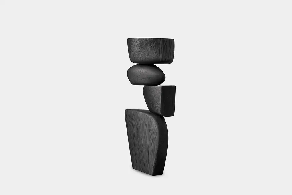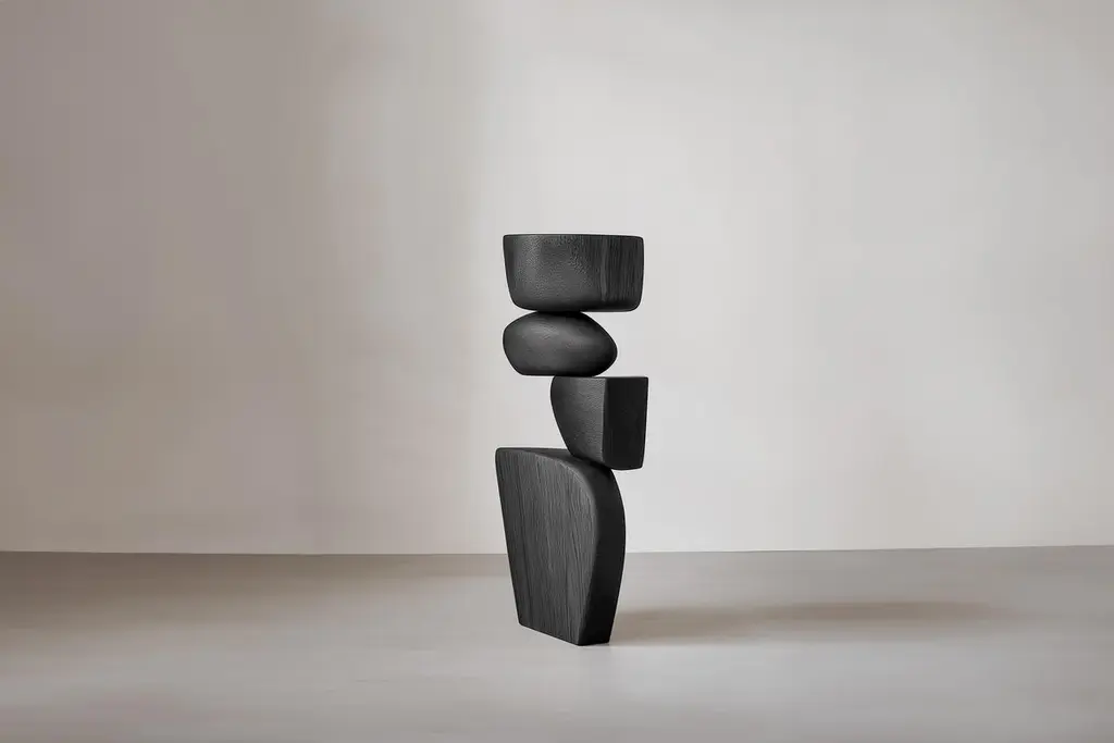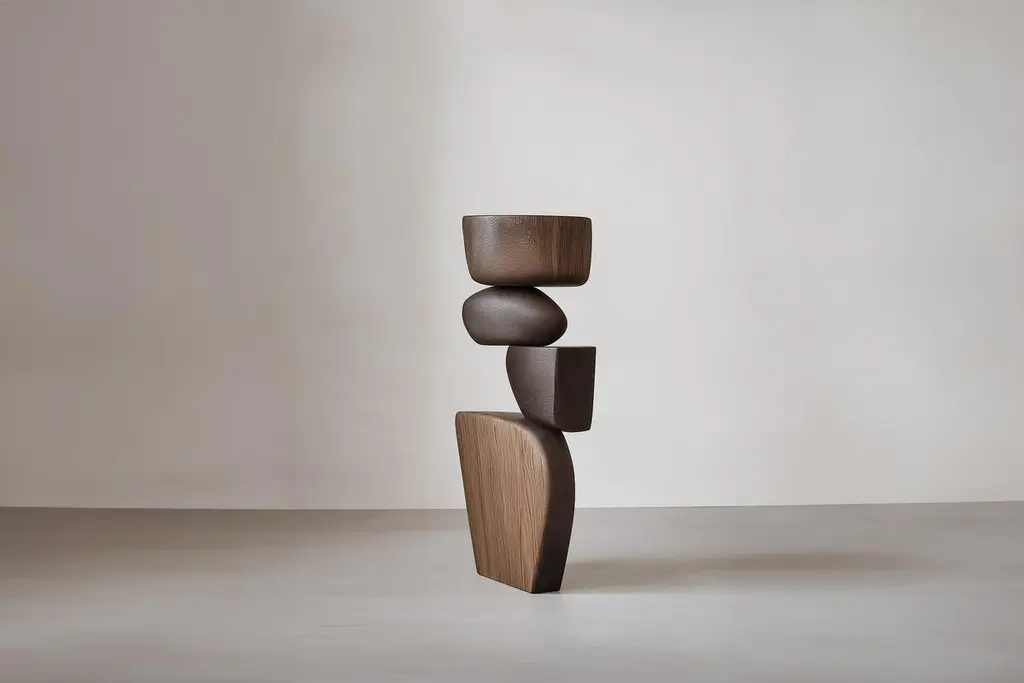 Handmade Abstract Art Lull No25 – Wooden Sculpture by NONO———Balance and tension are at the core of these sculptures. The interplay between the smooth, rounded forms and solid, angular bases creates a delicate equilibrium that invites contemplation. Fragile elements seem to find strength in their very vulnerability, constantly negotiating their own stillness. The tension remains present, yet never descends into chaos, evoking a quiet pause, a moment of serenity in the motion of life.The juxtaposition of curved, pebble-like shapes against straight-edged bases mirrors the harmony between the organic and the geometric. These forms feel both natural and sculpted, as though shaped by the slow, deliberate hand of nature and the precision of craftsmanship. It’s as if these pieces rest in a moment of perfect balance—a pause between forces that seem at odds, yet together, create something deeper and more profound.This collection embodies a monumental idea—one that celebrates the subtle tension between fragility and endurance. Though the forms may appear delicate, their strength lies in resilience. Each sculpture stands tall and quietly powerful, offering a sense of solace in stillness, a reminder that stability can emerge from the most unlikely structures.These pieces explore the delicate dance between opposing forces, where solace and tension coexist in harmony. The most meaningful moments in life often come from these pauses, from embracing the quiet spaces between movement. These sculptures whisper a truth—that transformation often finds its roots in stillness, in the spaces between tension and release.Each sculpture is crafted from solid wood in our workshop in Mexico City, ensuring no two pieces are ever alike—not only in form, but also in the natural texture and tone of the wood itself. Just as no two trees are the same, each piece carries its own unique character, shaped by the grain and color variations of the wood. This natural diversity is what makes each sculpture truly one-of-a-kind. These works are made to order, allowing the time and care needed to ensure that every piece reflects its own individuality and beauty, celebrating the organic and the serene pause within the material.——NONO is a Mexican design brand with more than 10 years of experience dedicated to the production of interior furnishings, editions, and custom-made projects. At NONO, we create pieces of extraordinary beauty, accommodating the particular needs and tastes of each client with exclusive high-quality designs.————Some details to consider when placing an order with us:• Catalog images are digitally generated. Actual products may slightly vary in texture, grain, and final finish due to natural material differences. Despite these variations, our expertise ensures each piece maintains high quality and matches the intended design.• All of our products are made to order, and the lead time for standard products is estimated to be 9 to 12 weeks, plus shipping time. However, special pieces or sculptures may require a longer lead time.• We offer customization in dimensions and finish for all of our furniture pieces, which may result in additional charges.• We only facilitate freight services by a third party. The client is solely responsible for any associated import/export taxes, as well as any necessary customs paperwork.• We are not responsible for any damages that may occur during shipping or for any customs-related delays.