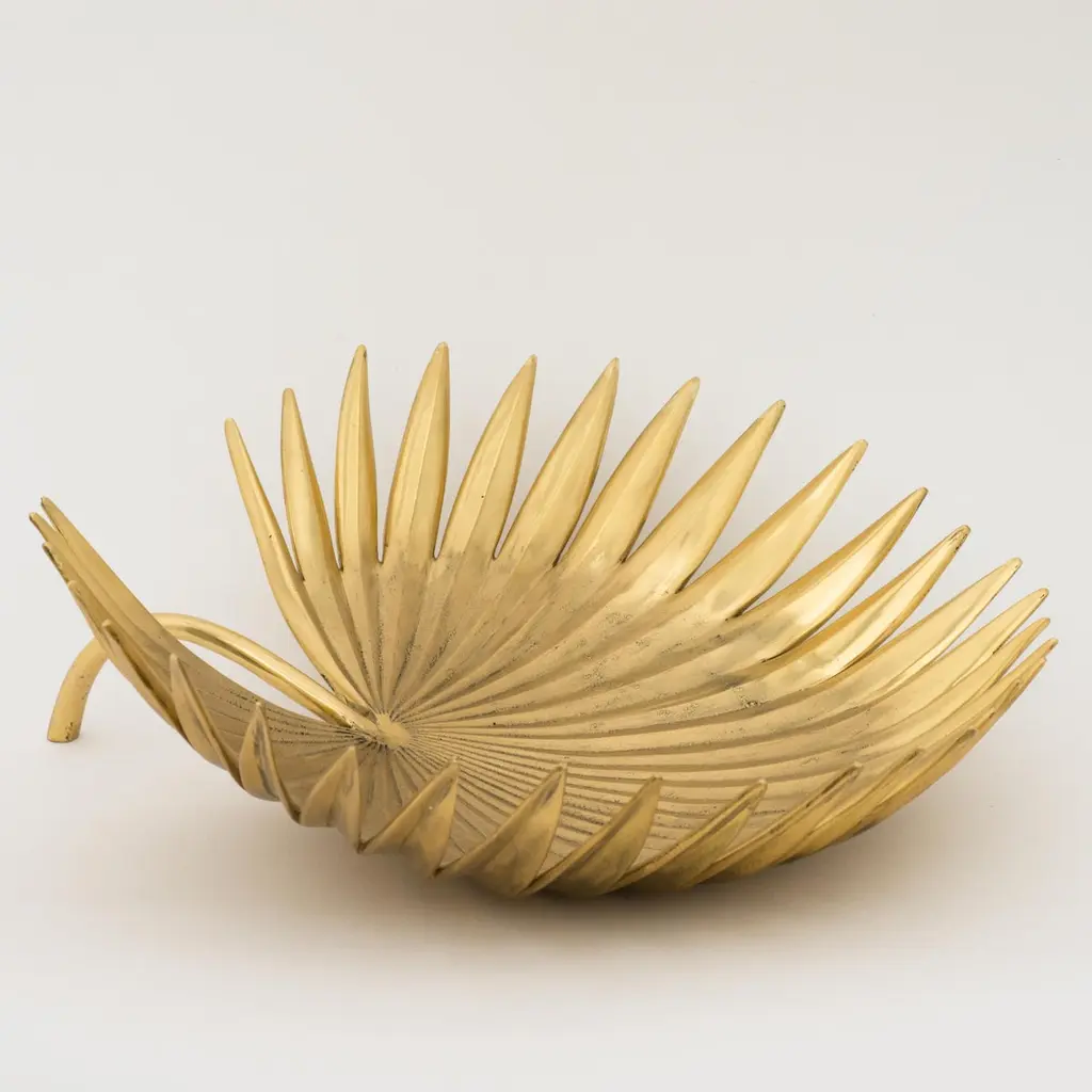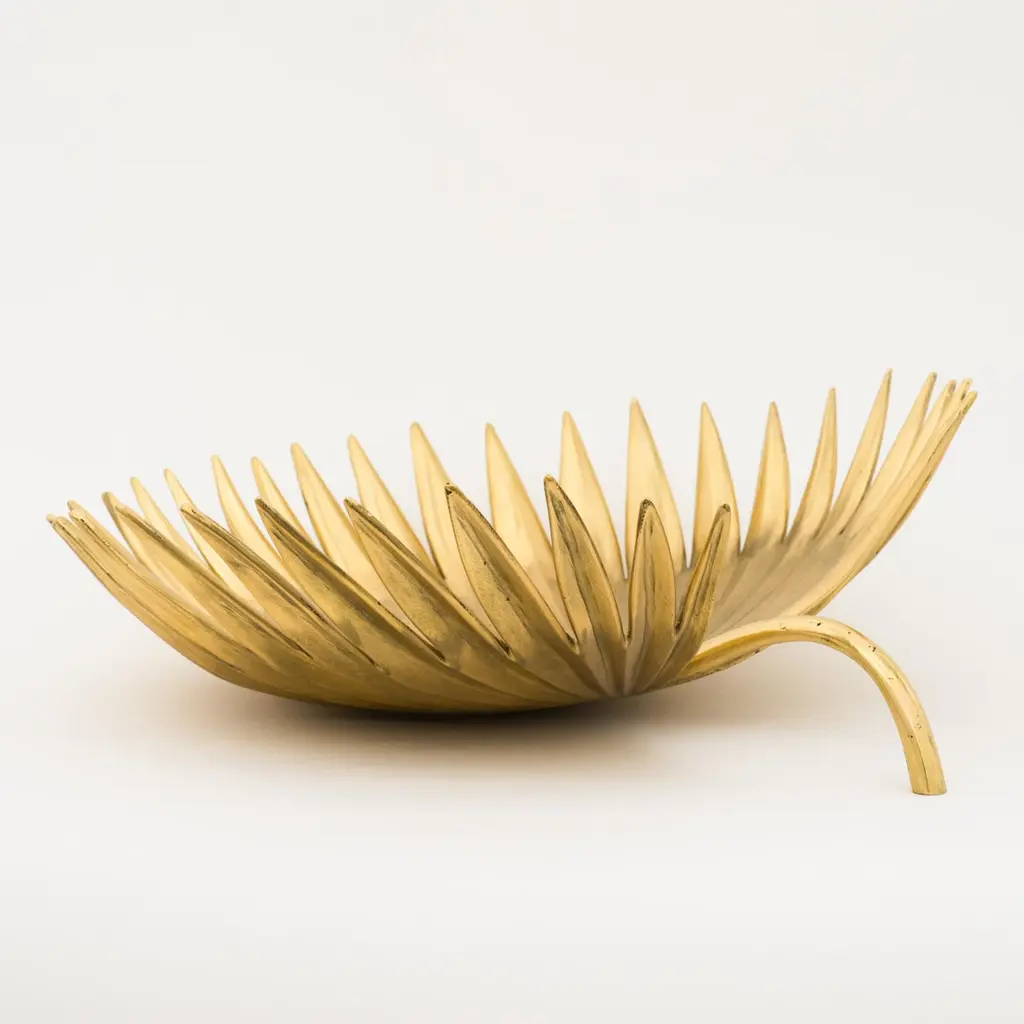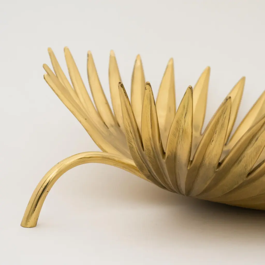 Handmade Cast Brass Palm Tree Leaf Decorative Sculpture Bowl, Large