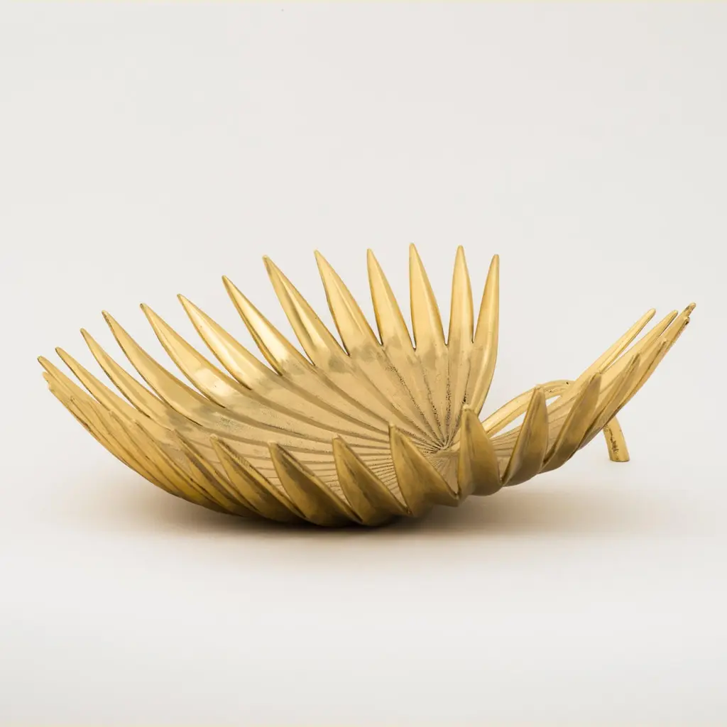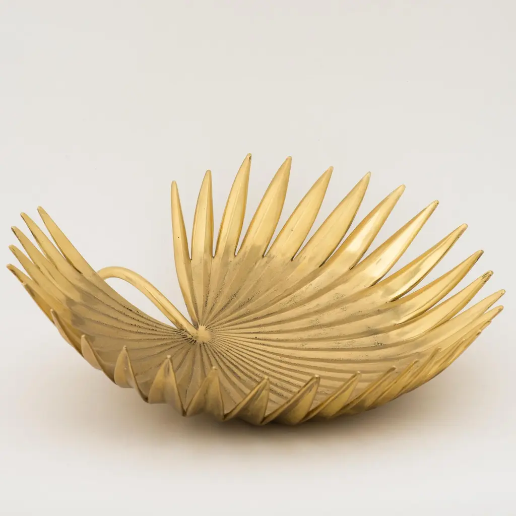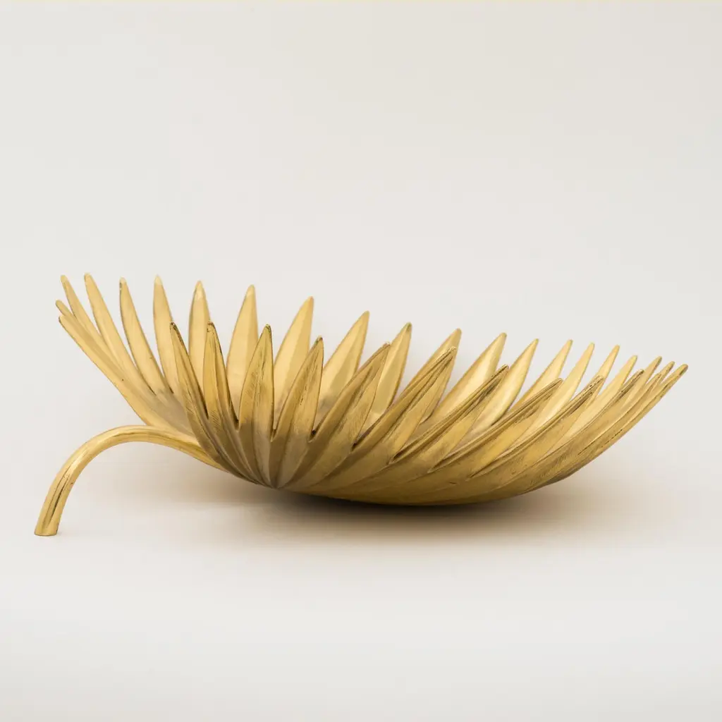 Handmade Cast Brass Palm Tree Leaf Decorative Sculpture Bowl, Large
