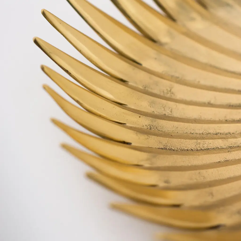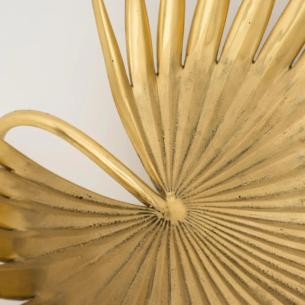 Stunning large hand-cast sculptural brass palm leaf with a mixed polished and raw finish.Slight variations in the patina and polished finishes, patterns and sizes are characteristics of such original handmade creations. These characteristics enhance the beauty of the product and make each piece unique.Dimensions: H 12.7 cm x W 41 cm x D 43 cm / H 5 in x W 16 in x D 17 inPlease note that the lead time for this piece is of 6 to 8 weeks.ORDERS OF MULTIPLE ACCESSORIES OF THE SAME TYPE: Please contact us to receive a Packing and Shipping quote when ordering multiple accessories of the same type. An order for multiple accessories of the same type may not be accepted without extra packing and shipping fees. Thank you.