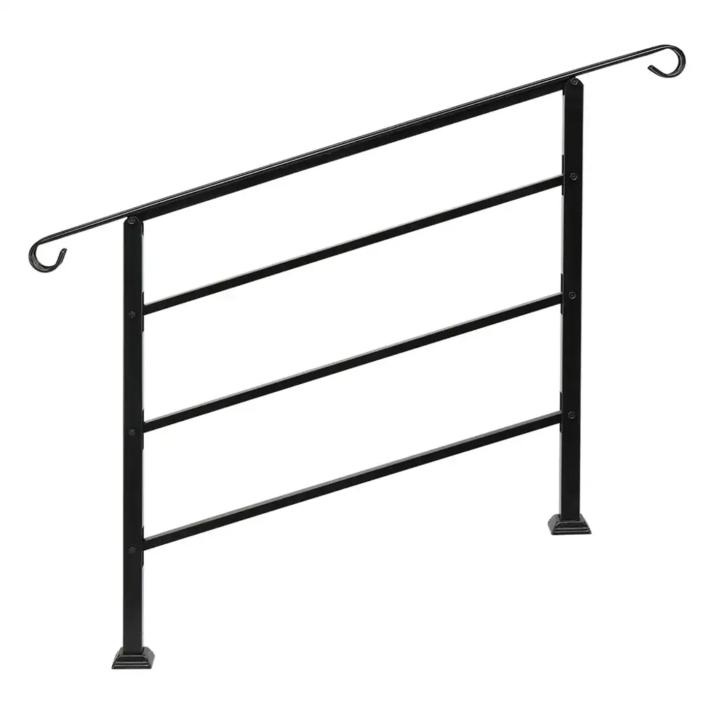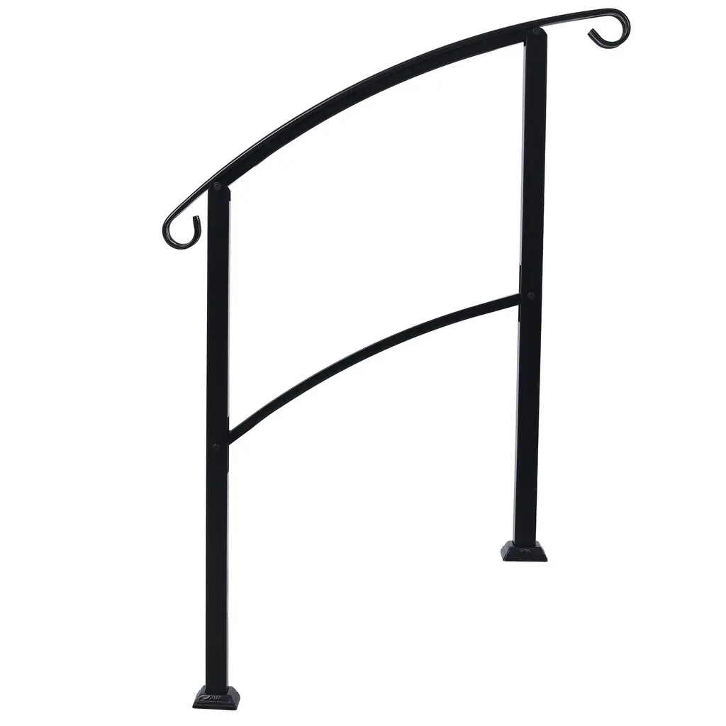 Handrails For Outdoor Steps, Wrought Iron Handrail Fits 1 To 4 Steps - Black