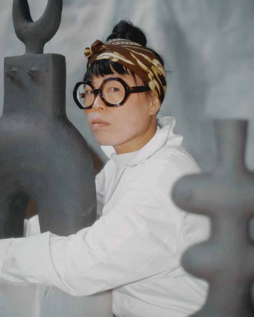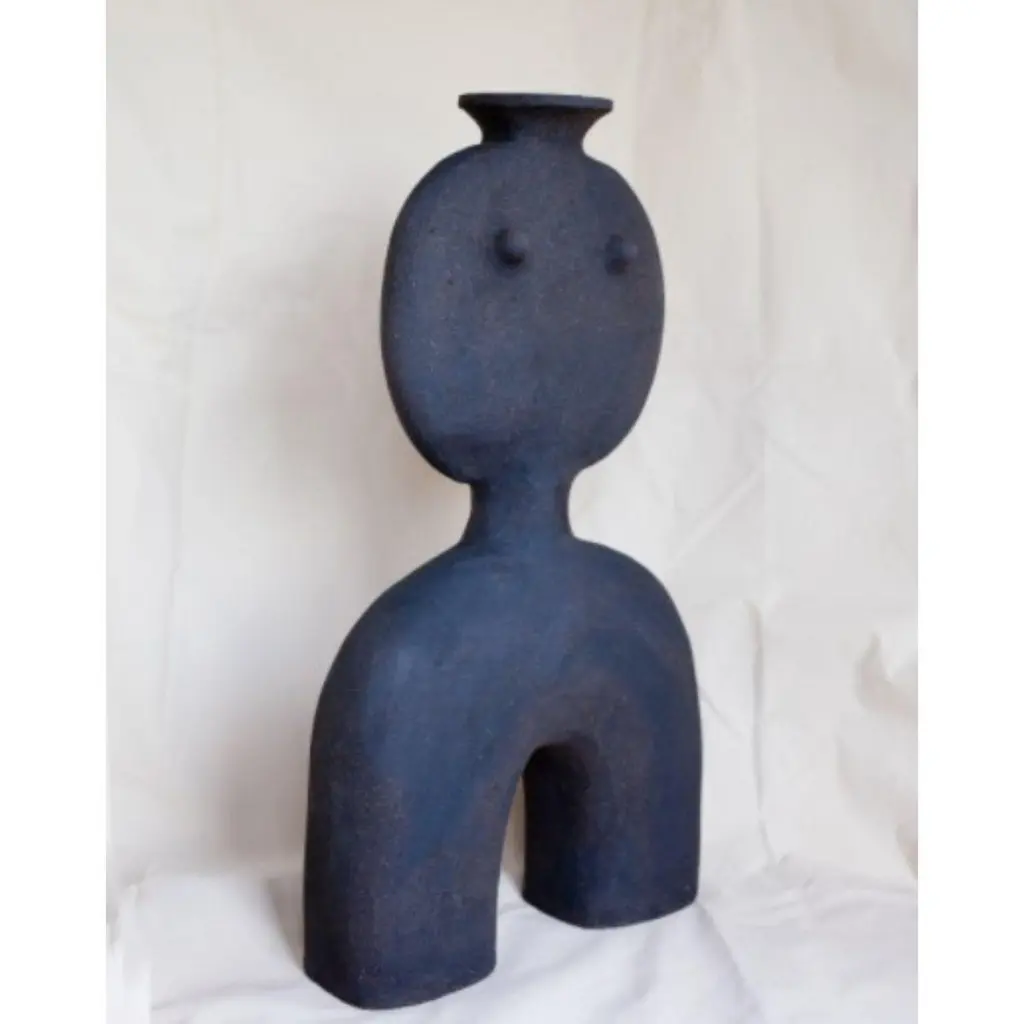 Haniwa Warrior 15 sculpture by Noe KuremotoMaterials: Black stoneware sculptureDimensions: D11 x W33 x H57.5 cm My interpretation of ancient clay figurine Haniwa.For years I was afraid to become an artist.Afraid to voice my honest view of the world.Afraid to sacrifice the security and comfort of my day job.Afraid to admit it was killing my soul.Afraid of confrontation.So I stayed agreeable - to avoid it, at all costs.I did it long enough that I could no longer hear my own voice -the voice that said what I really want to do is make art.I kept quiet,so no one would know I was failing at my true calling.It became my deep, dark secret.I was too scared to lose that end of the month pay check.I’d tell myself – You have a mortgage, a family.A legitimate excuse, socially acceptable.But my soul grew weaker and weaker,the more I didn’t demand the best from myself.I became my worst self.Who could kill my own soul.This is how I came to make my Haniwa.I would like to share them with you.Especially you who are ready to take on your maximum challenge.One you’ve longed for in your heart, longer than you care to admit.Let us stand up, our souls united, stronger for taking this important true steptogether.All my strength to you.I salute you.- Noe Kuremoto 2021Noe Kuremoto is a ceramic artist who makes everything by hand using simple tools. She’s known for playful sculptural work that takes the form of functional wares. Her pieces mix child-like simplicity with contemporary sophistication, and incorporate her background in Fine Art and design with her cultural heritage. She shares the traditional Japanese view that sprits are everywhere, especially in nature – for Noe the truth of our universe can be found in wilderness. Her signature piece is a single flower vase - an ‘Ichirin Zashi’, which invites the sprit of nature into people’s homes in the simplest form possible. It’s representative of her desire to make a deeper connection in a world that can often feel shallow. “The single vase comes from my deep ocean of childhood memories, I hope every piece I make helps my sons to see the world as a beautiful place.” Her ceramics are like a beautiful dream that her hands, fire and clay turn into reality. Noe was born in Osaka Japan, and graduated in Fine Art with First Class Honours from Central Saint Martins College of Art. She works and lives in London with her family, including sausage dog Lassie.