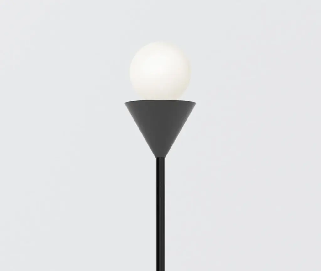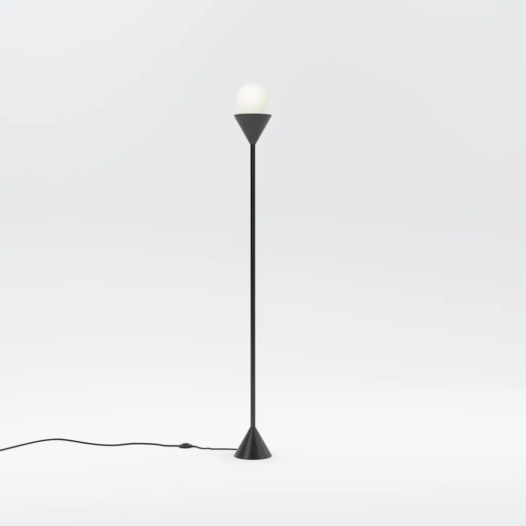 Harlequin Floor Light by Atelier AretiDimensions: D 16 x H 155 cm.Materials: Powder-coated metal; white glass.Available in black, white, or color. Please contact us.All our lamps can be wired according to each country. If sold to the USA it will be wired for the USA for instance.Atelier Areti was established by sisters Gwendolyn and Guillane Kerschbaumer.Gwendolyn and Guillane’s background is in visual arts - drawing and sculpture, architecture, and design. Their work reflects this interest in both the object and space, exploring and existing between the sculptural quality of the object and its spatial dynamic.‘We strive to develop something new and beautiful through our work. We are driven by curiosity and the desire to explore works that touch us on a deeper, direct emotional level as well as engage us in a more conscious conceptual way.These artistic ambitions need to be realized and developed in the actual material product. The material realization gives the design it’s place in our daily life. A well done object will be valued for a long time; we aim to create pieces that remain relevant through their beauty, function, and quality.’