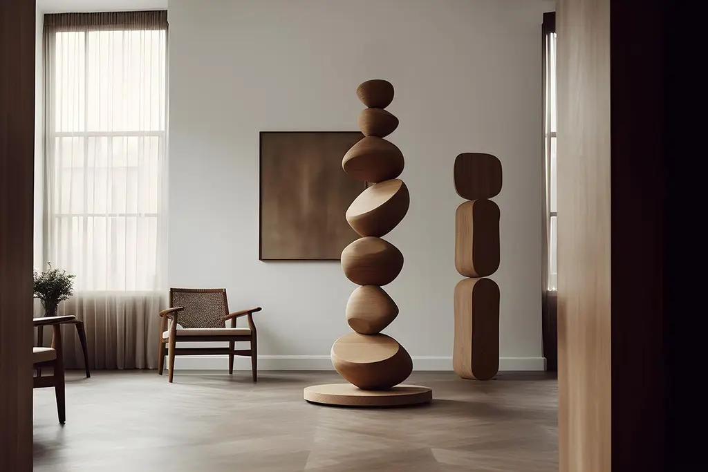 Harmonious Oak Standing Sculpture Still Stand No26, Nono's Escalona Design