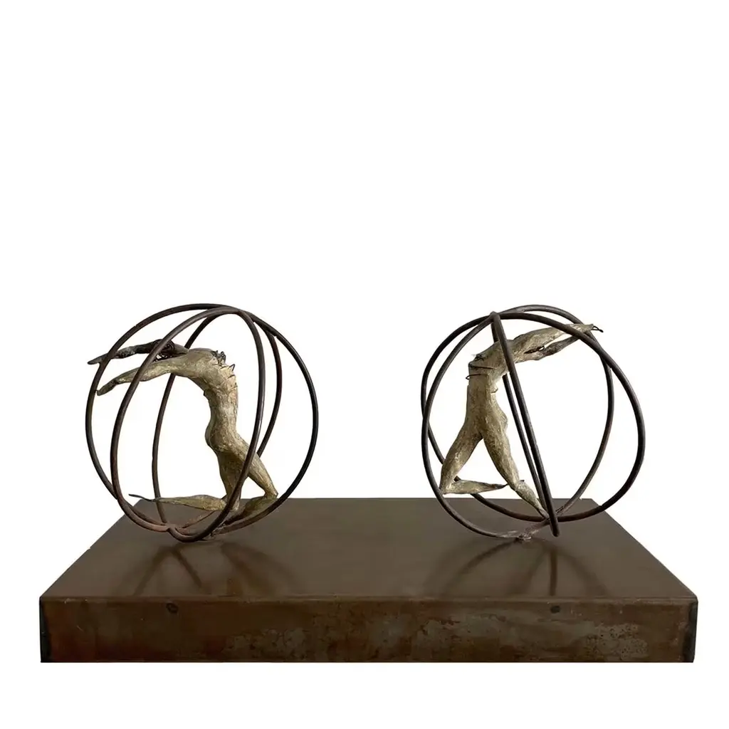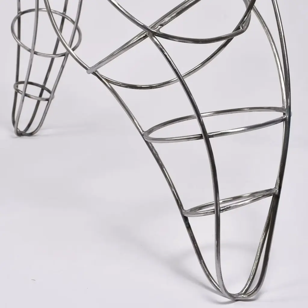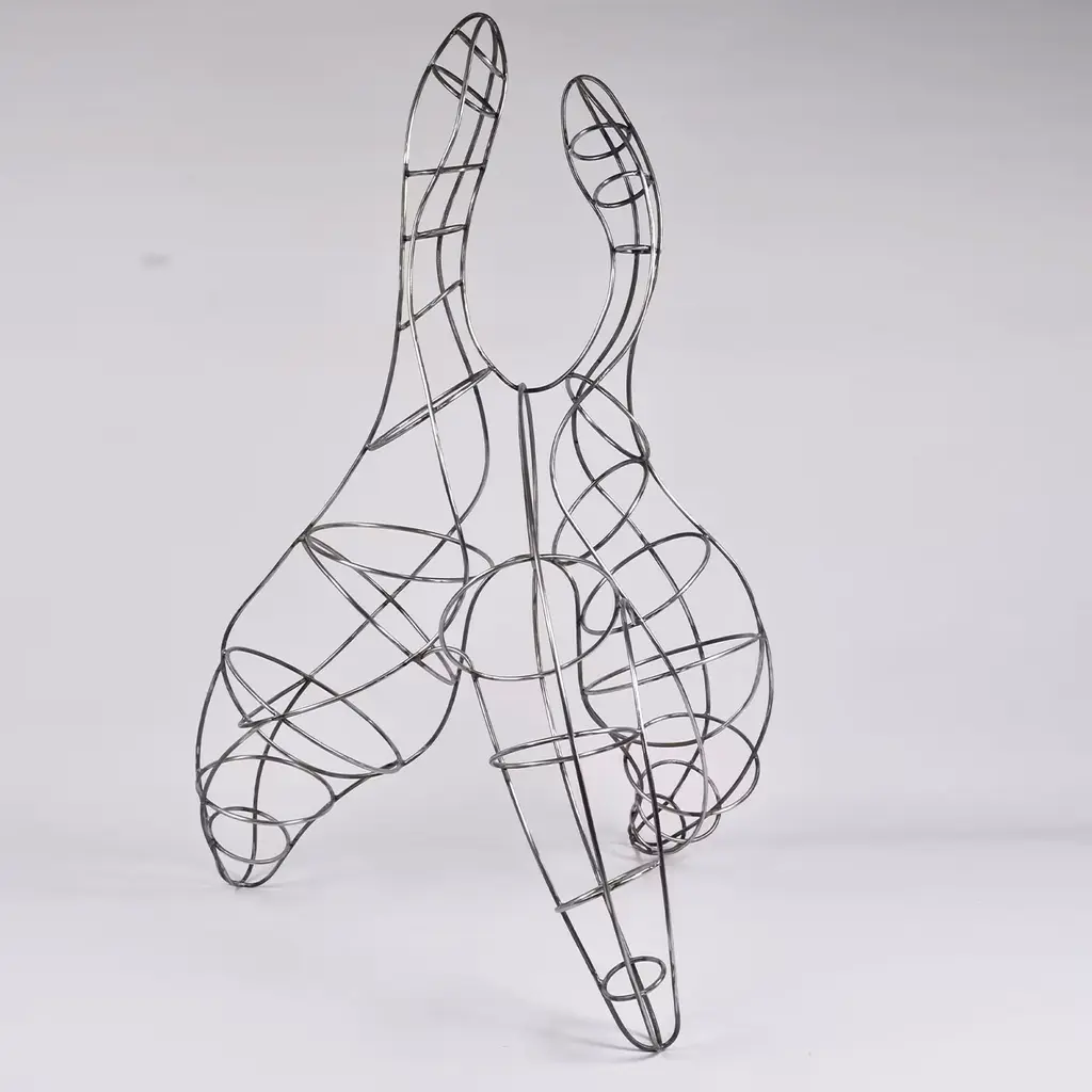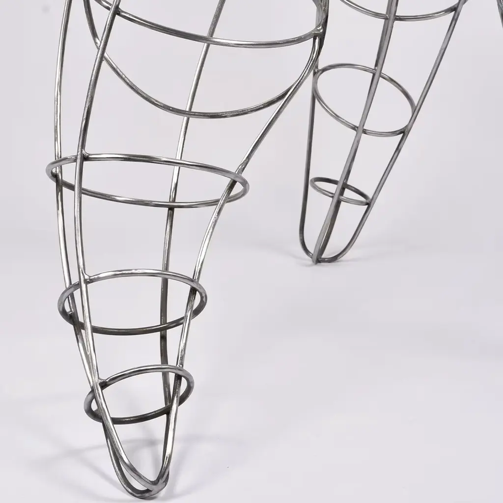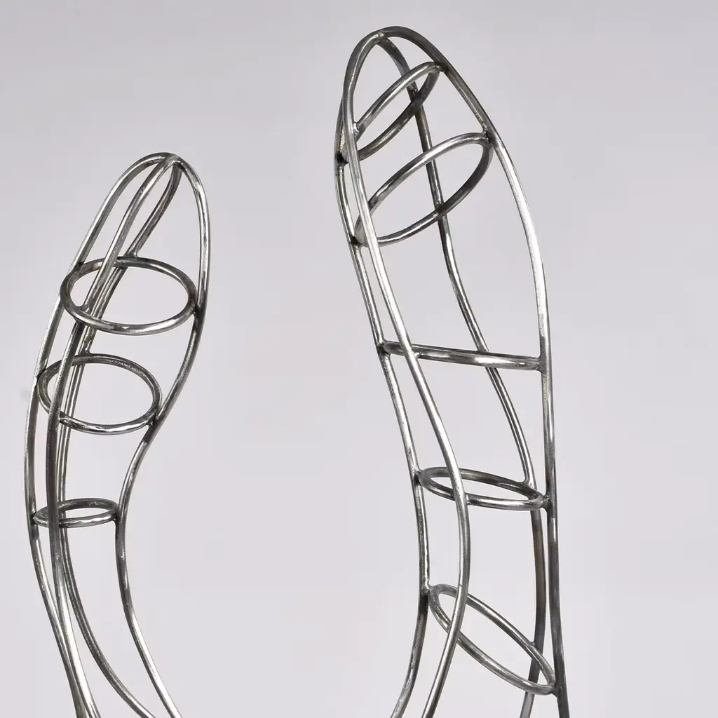 Harmony in Motion is a symphony of form and rhythm, inspired by the graceful movements of the female body. Crafted with meticulous attention to detail, it is entirely handcrafted from steel rods, each welds a note in the symphony of its creation. The sculpture is embellished with a galvanic treatment, making it suitable for indoor or outdoor spaces. Slight variations may apply to any replica due to a handmade production process.