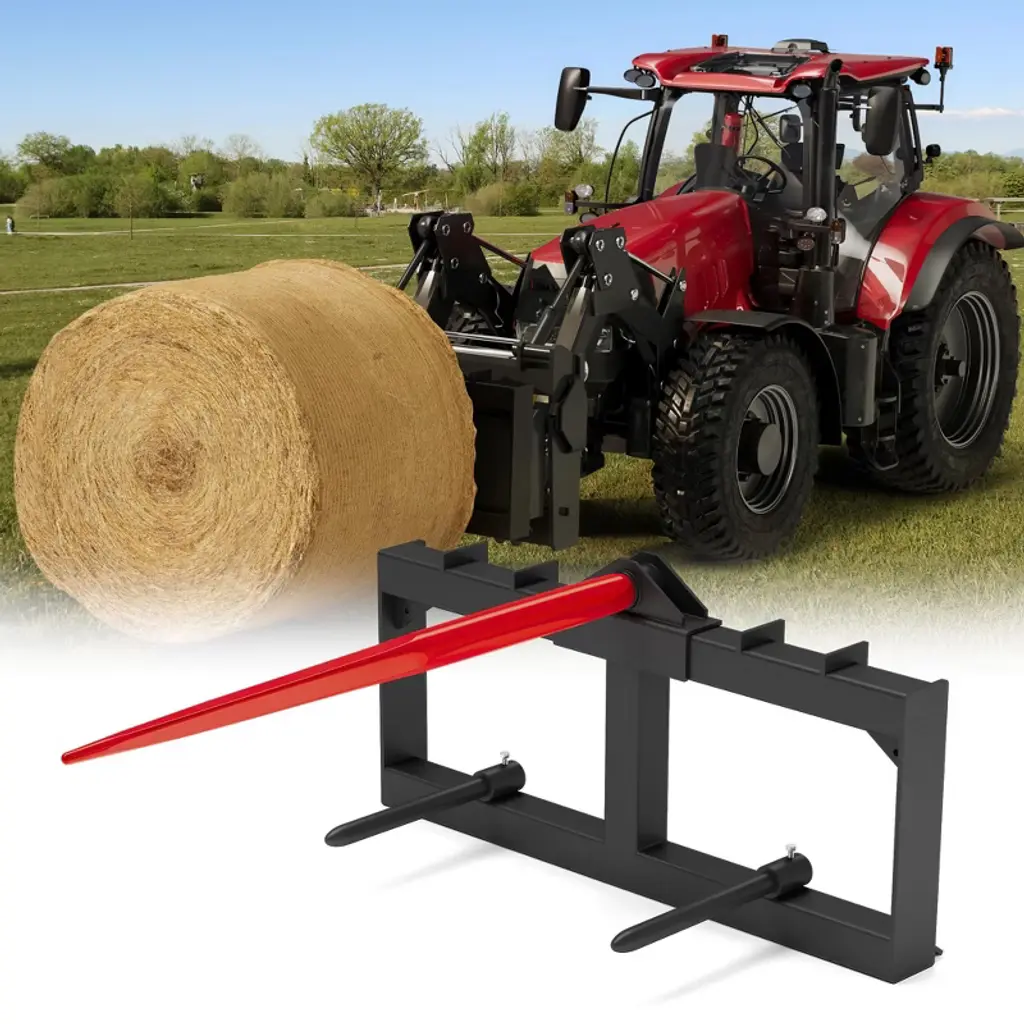 Hay Spear, Skid Steer Attachment - 49" Bale Spear With 3000lbs Capacity, 2X17" Stabilizer Spears For Tractors & Loaders